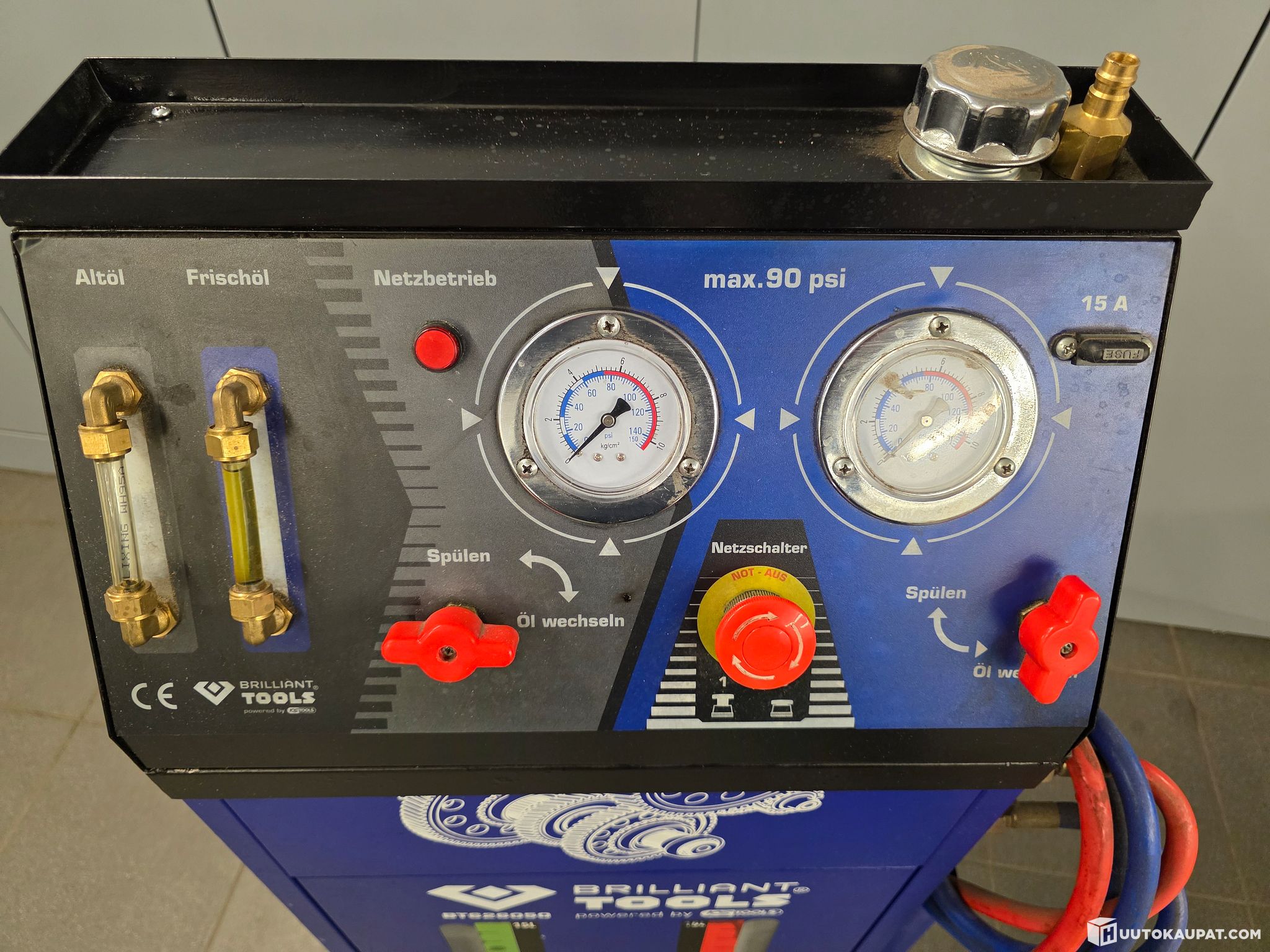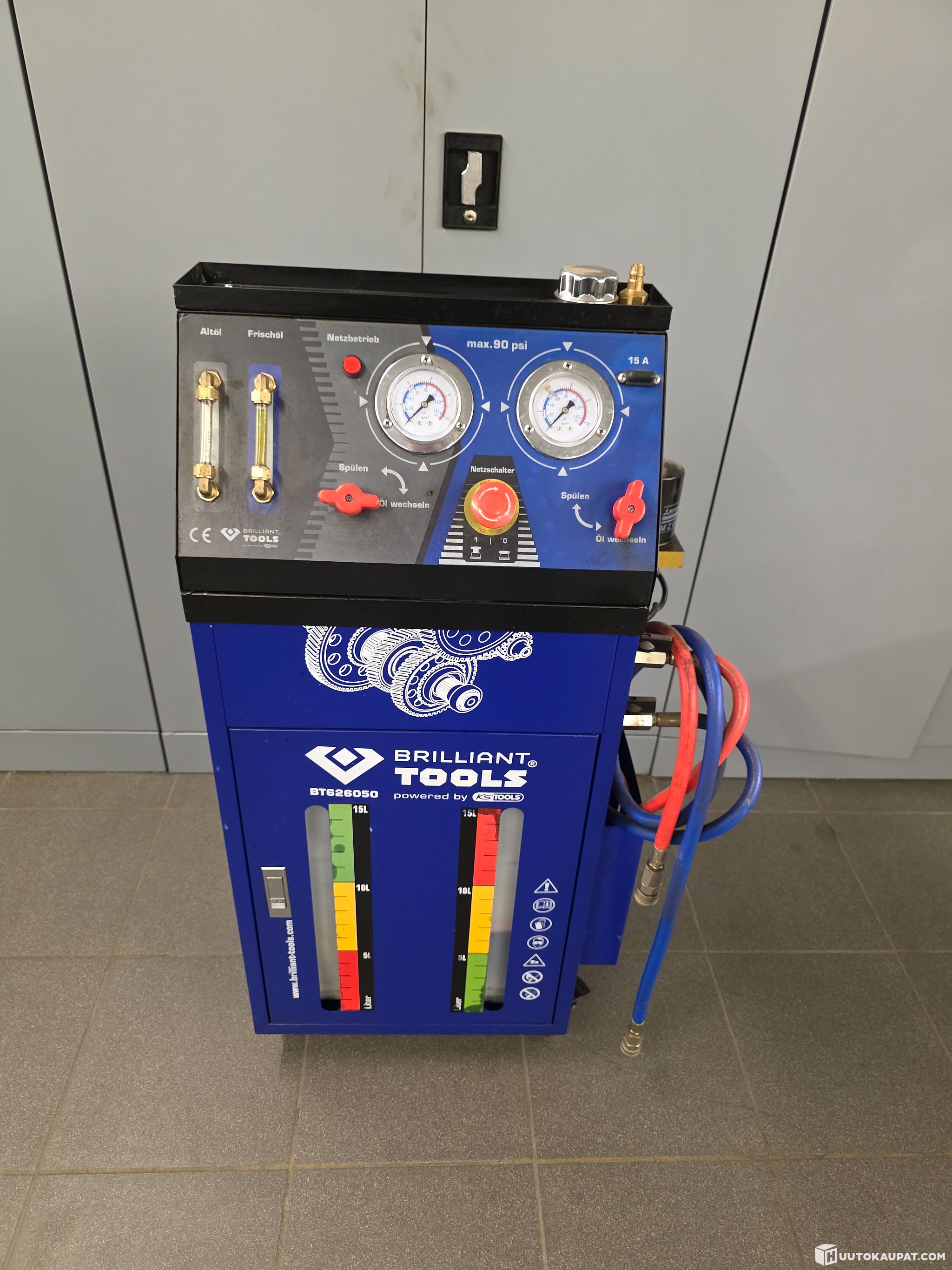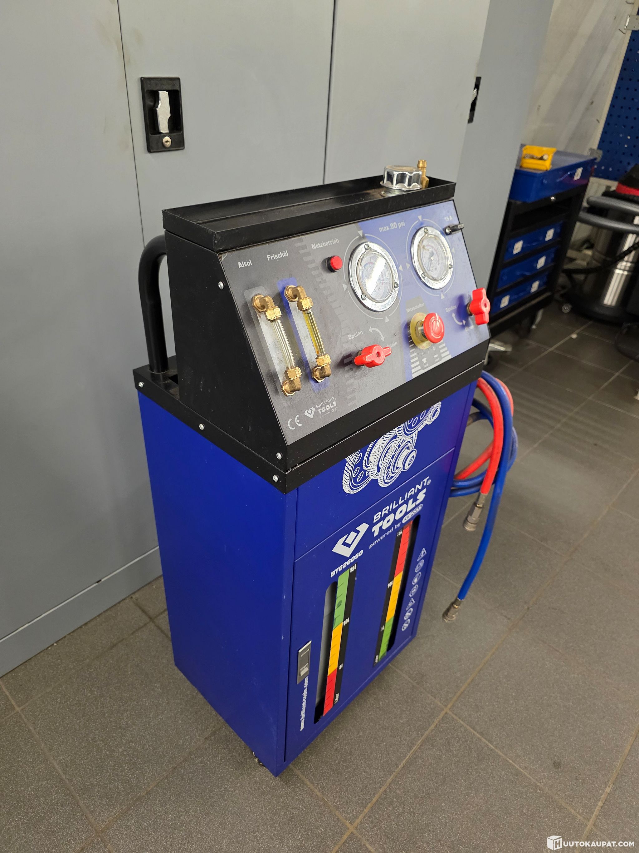 Transmission flushing device that came with the movable assets of a bankrupt car repair shop, sold to the highest bidder. In tidy condition; according to available information it appears to have been used once.