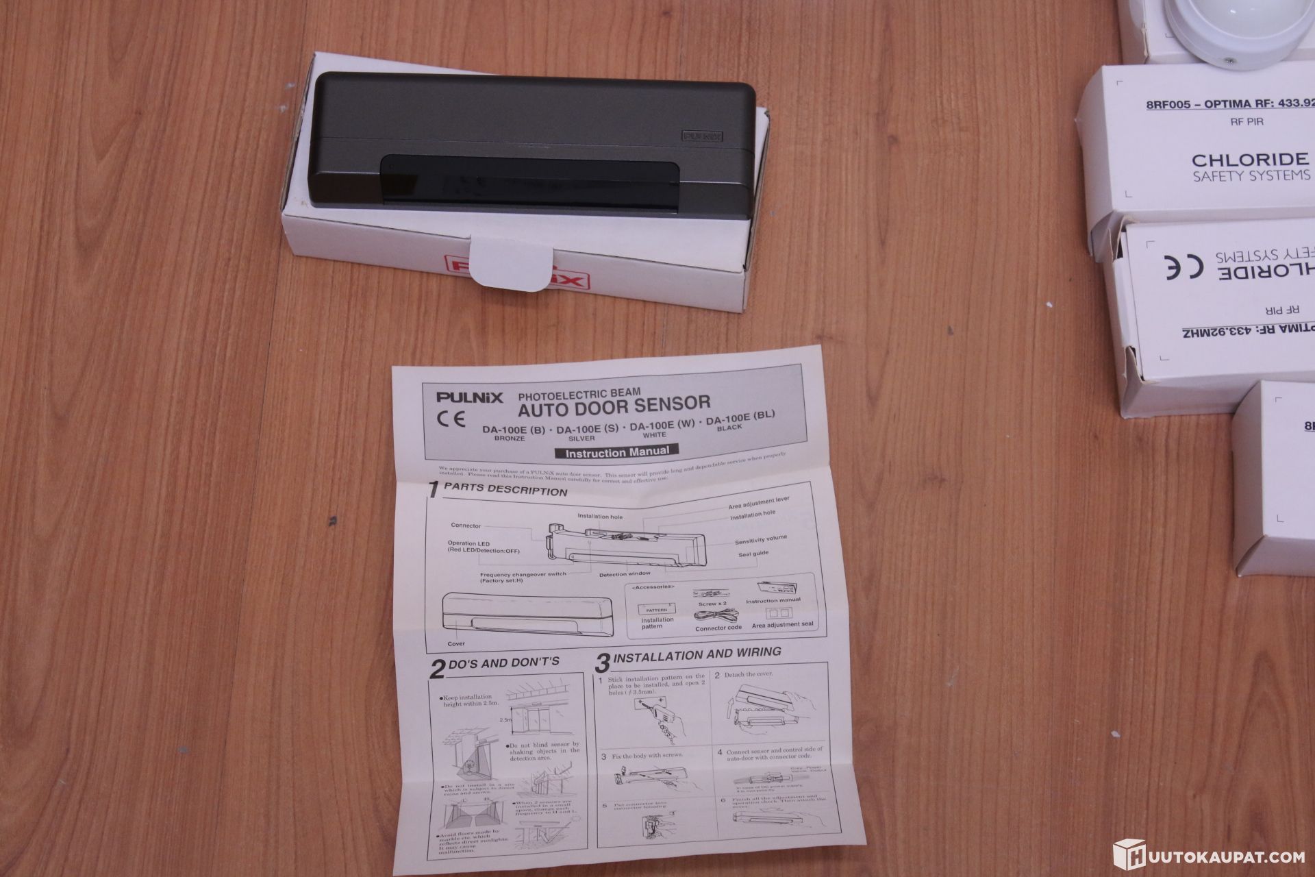 The lot includes, among other items, motion detectors.