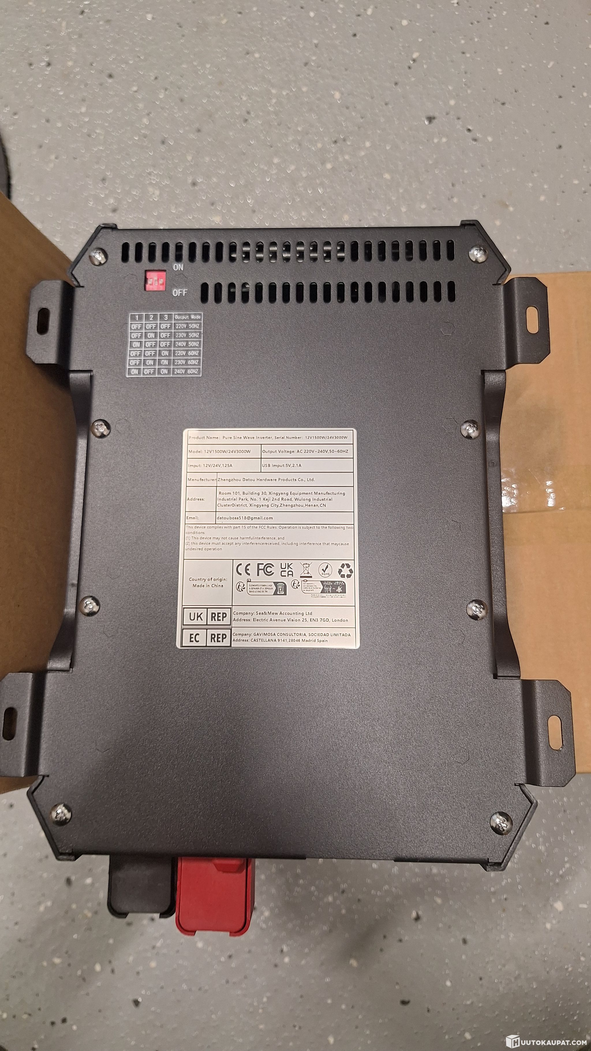 Continuous power (12 V): 1500 W; peak power: 3000 W