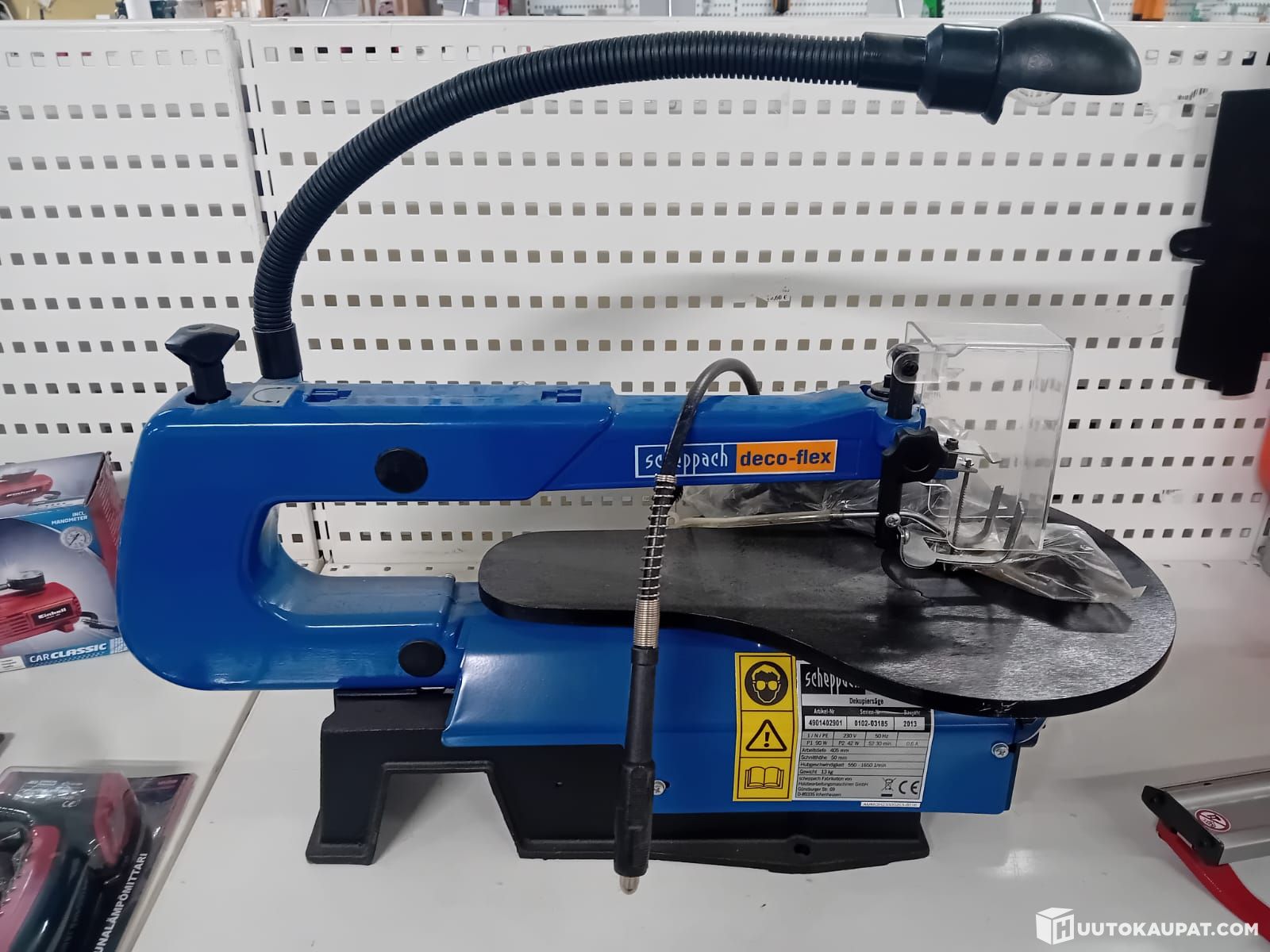 The table tilts up to 45 degrees. The motor is fitted with stepless speed control, allowing cutting of wood, plastic, bone and non-ferrous metals (aluminium, copper, silver, etc.).