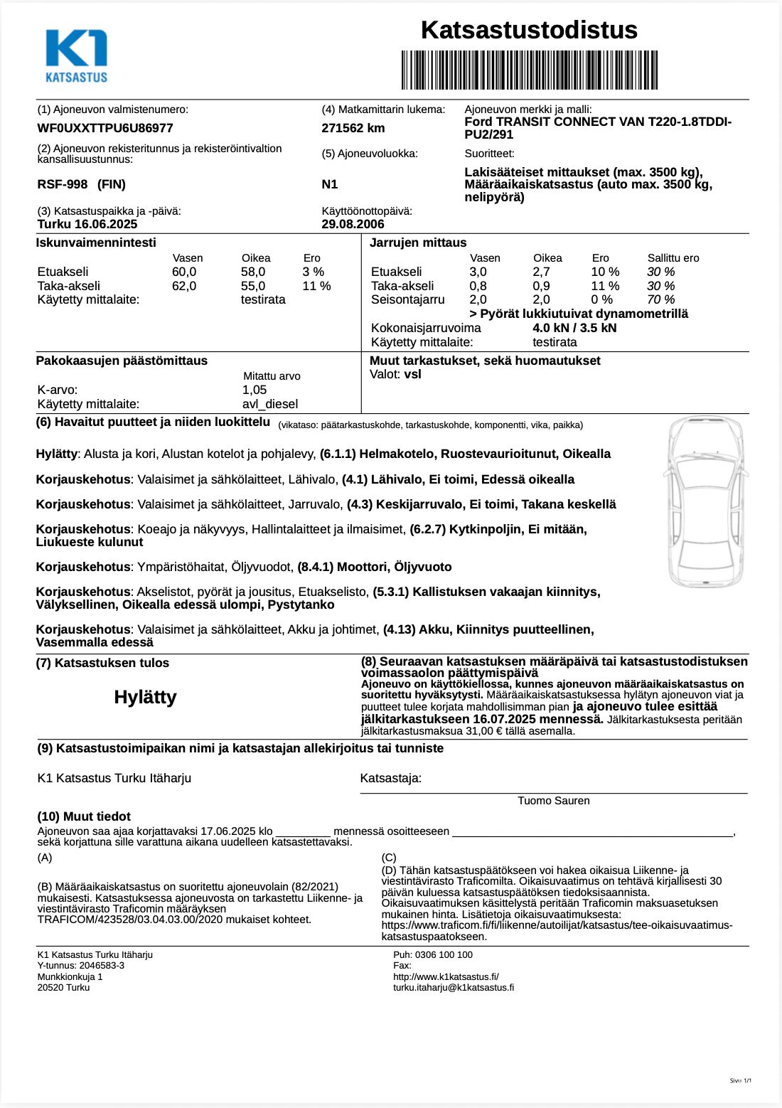 Inspection certificate from last summer added to the pictures.
