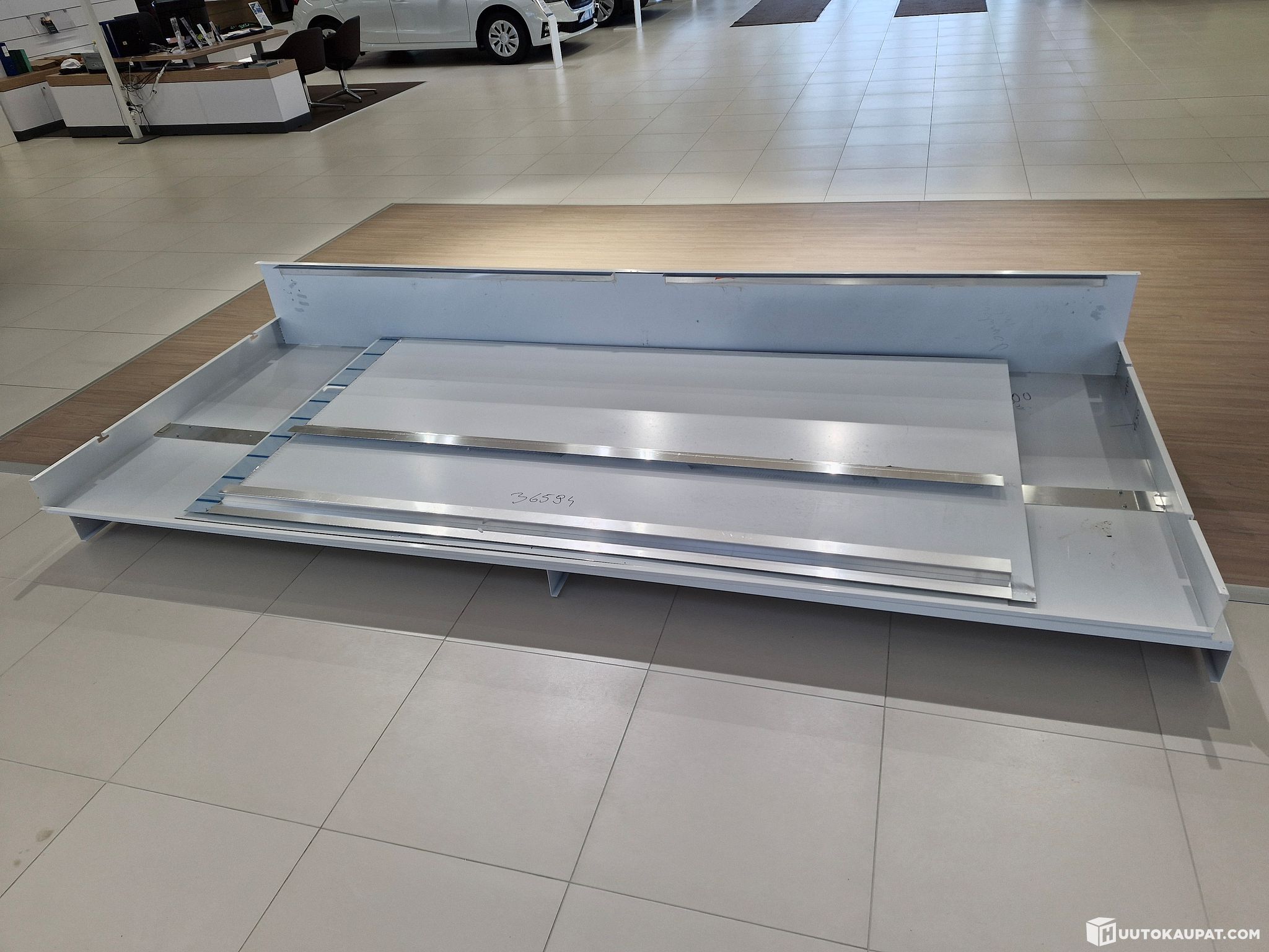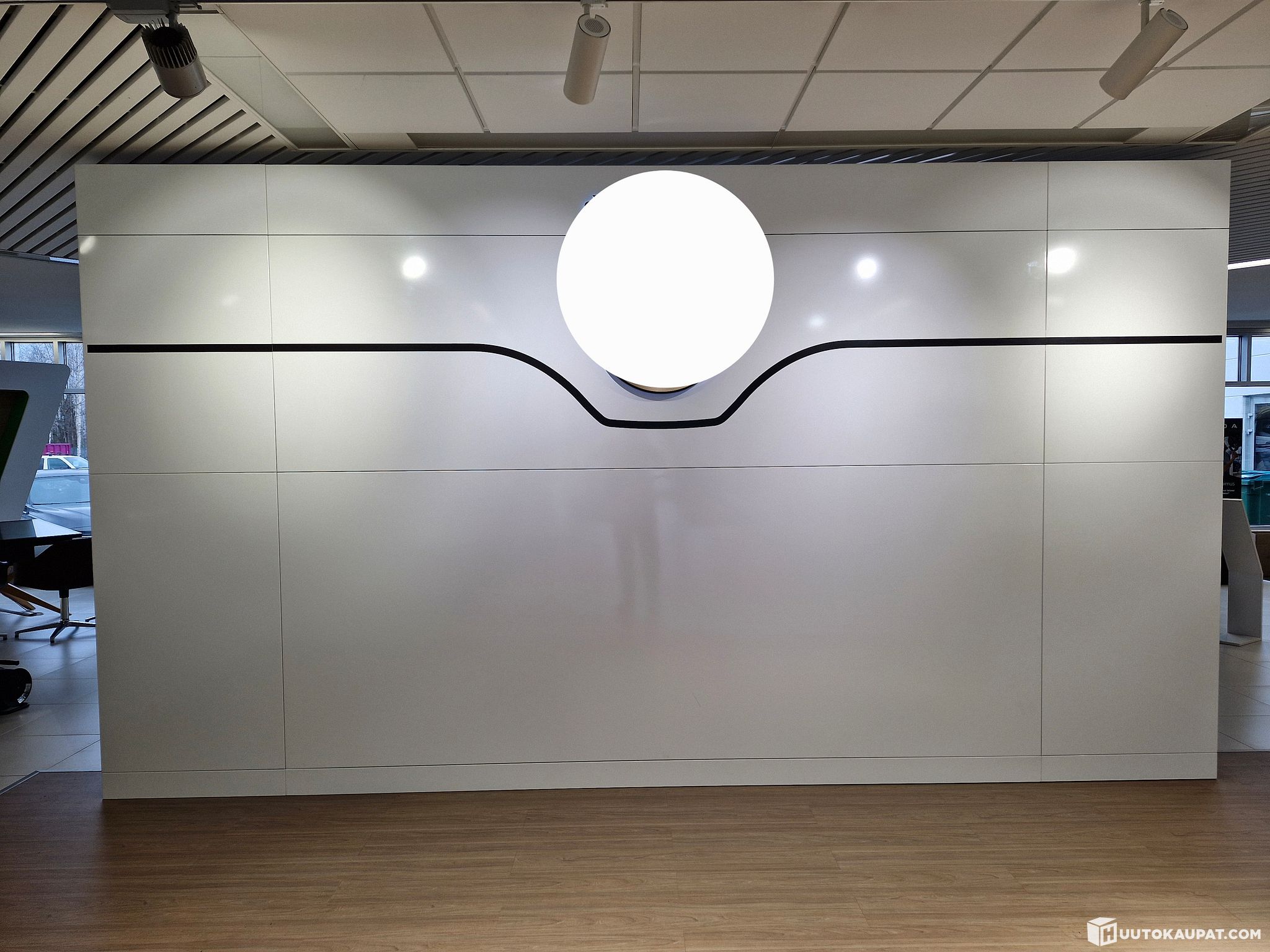Display wall recently removed from a new-car showroom, for sale.