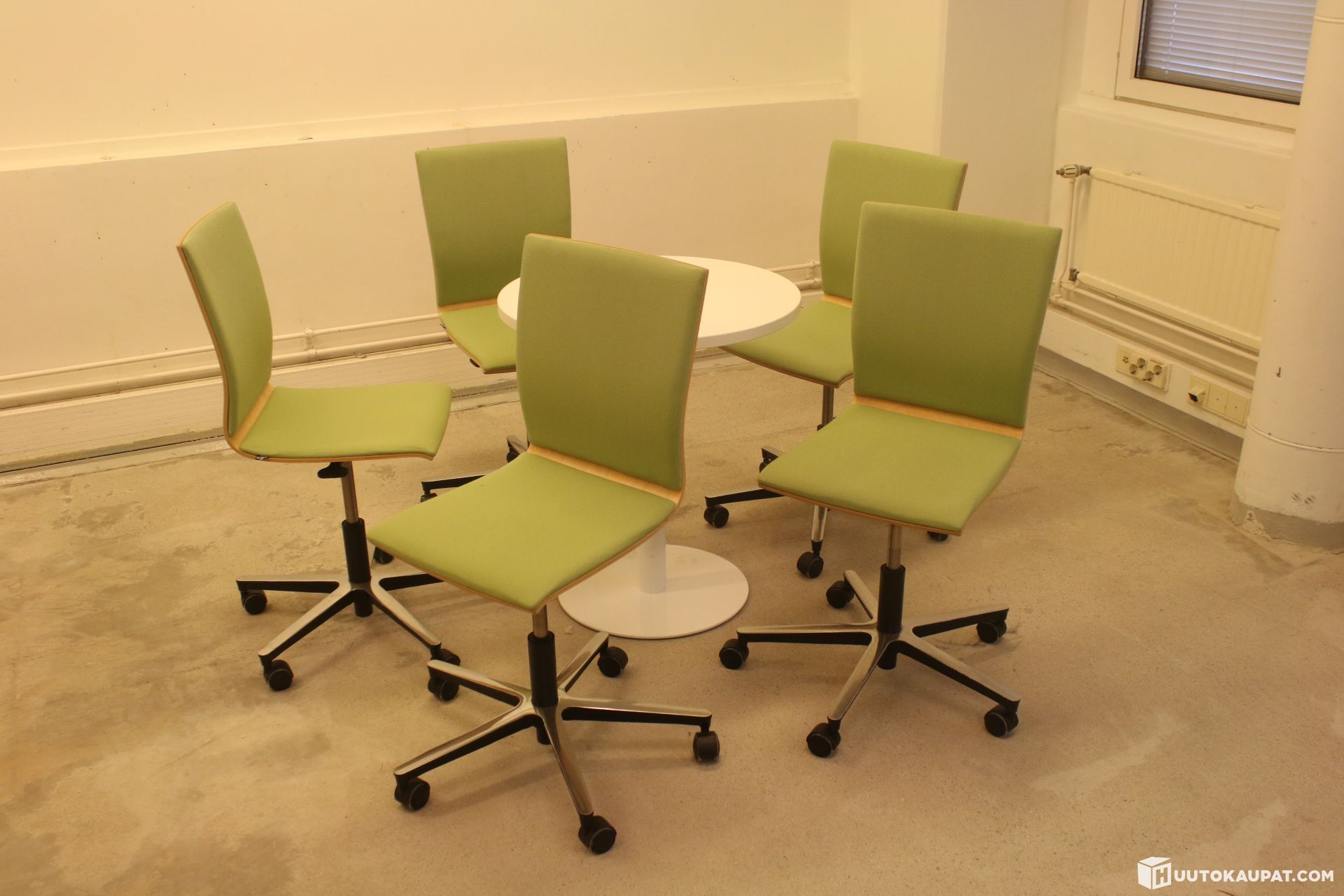 EFG chairs upholstered in green fabric and the white table are an excellent choice, for example for an office break room or reception area.