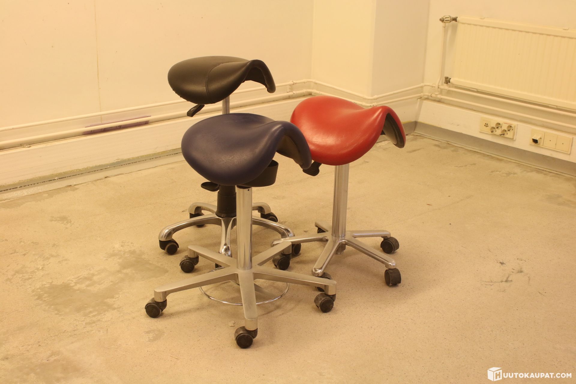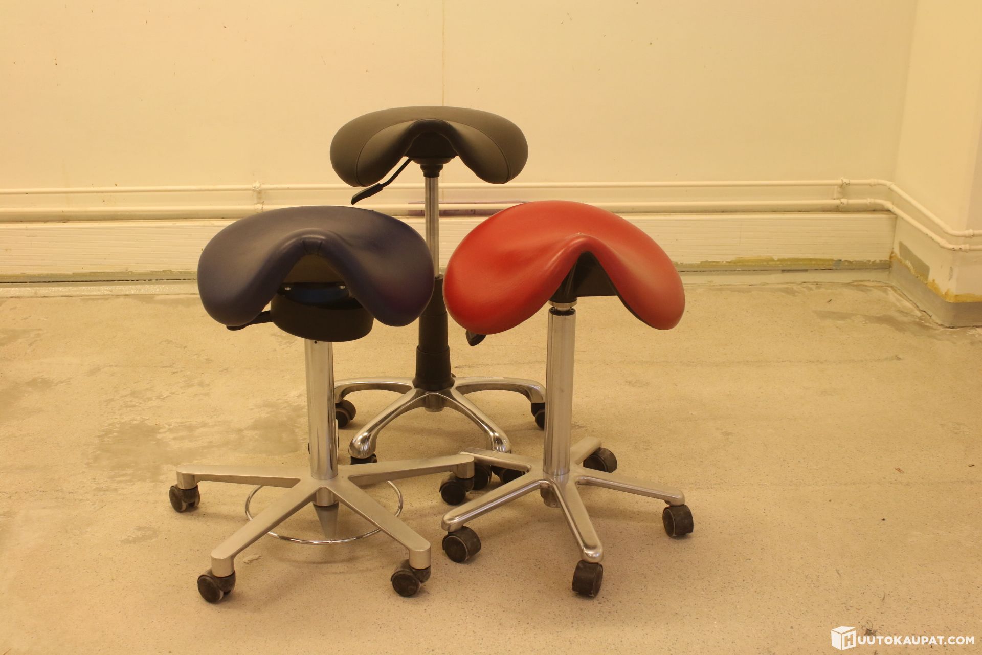 Three saddle chairs: two saddle-shaped and one basic model.