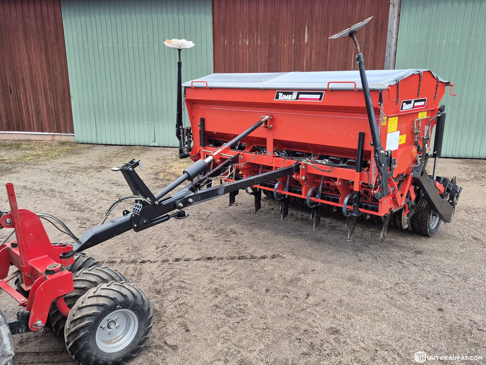Faults: the drawbar cylinder leaks slightly from the breather (still able to sow), there is rust in the fertiliser-side hoppers and a few fertiliser-side tubes are cracked.