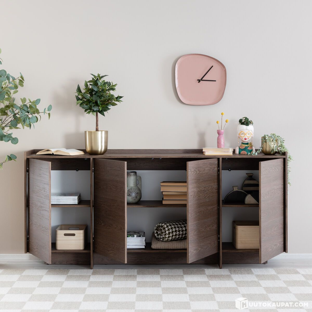 The Japandi sideboard is a reliable choice when you want extra storage with a clean-lined look. The restrained Japandi design combines Scandinavian clarity and Japanese calm: lines are clean, details are considered and the whole feels airy. The warm wood tone brings a calm look to many interiors. The sideboard works in the living room as a companion to a TV unit, stores crockery and linens in the dining area, or neatly hides miscellaneous hall items behind doors.