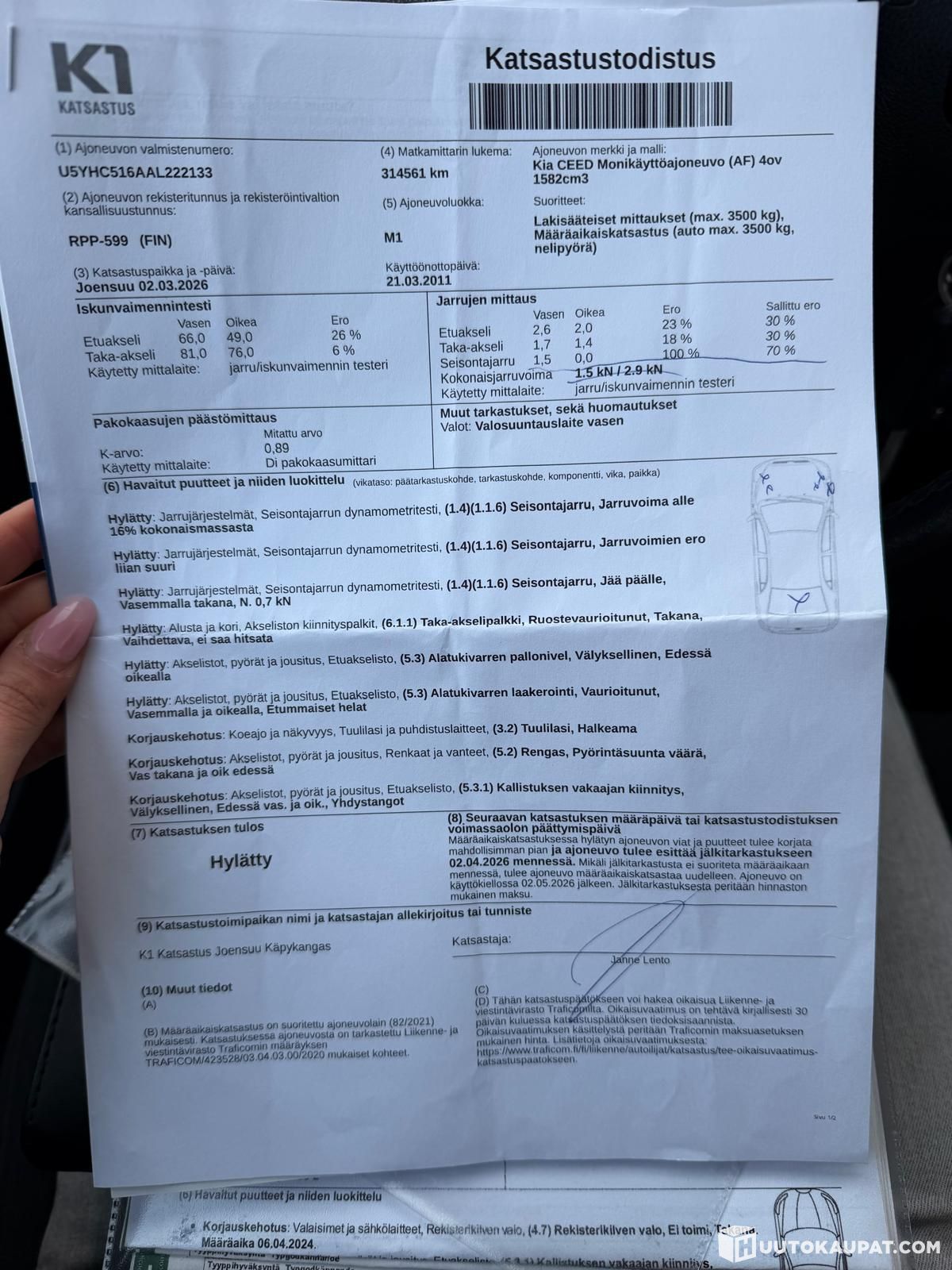 - The photos show inspection remarks and because of these there is some knocking while driving.