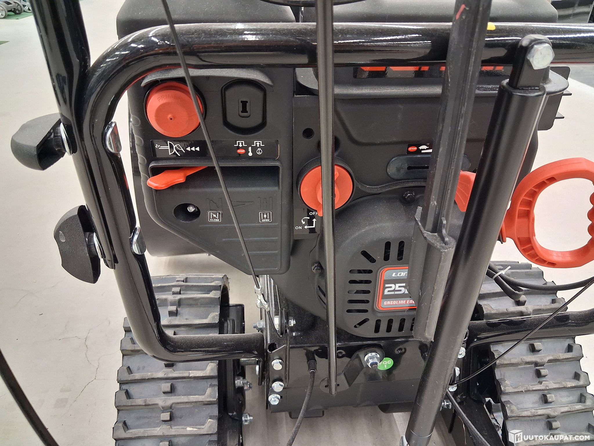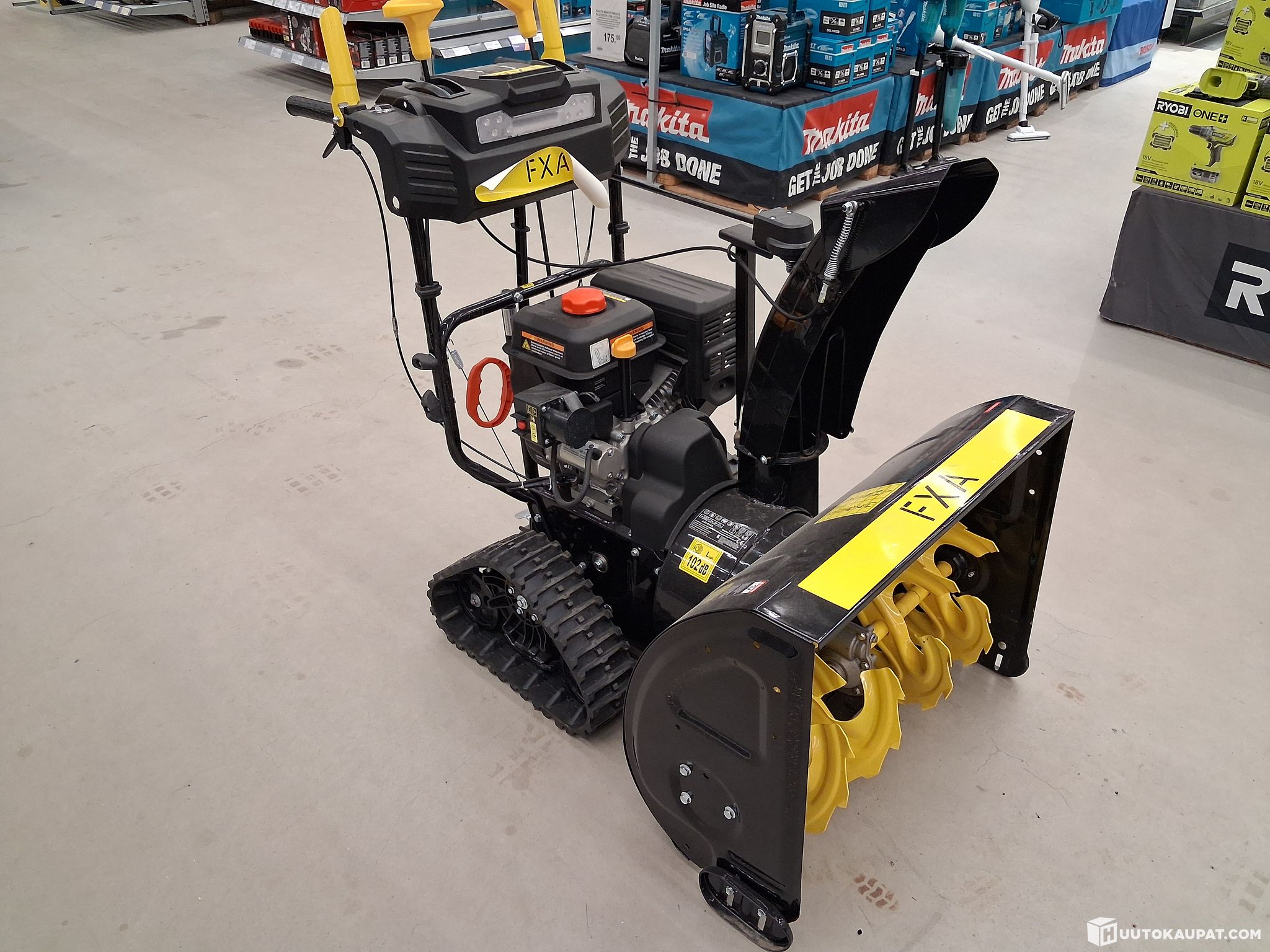 High-quality, two-stage FXA snow thrower suitable even for large yards. The machine is powered by a robust Loncin 252 cm³ 4-stroke engine. Thanks to the powerful engine and large 71 cm clearing width, winter snow clearing is efficient and fast – even in deep, heavy snow. The tracked design is well suited for deep snowdrifts, and the tracked undercarriage provides exceptional grip on ice. The snow thrower has stepped speed control with direction change. With stepped speed control you can set a suitable working speed according to the snow conditions. The self-propelled snow thrower handles slopes and uneven terrain well. It is equipped with a drive release for easy handling. The unit starts with an easy-to-use electric start or manually by recoil. LED lights at the front enable precise and safe work in the dark winter months.