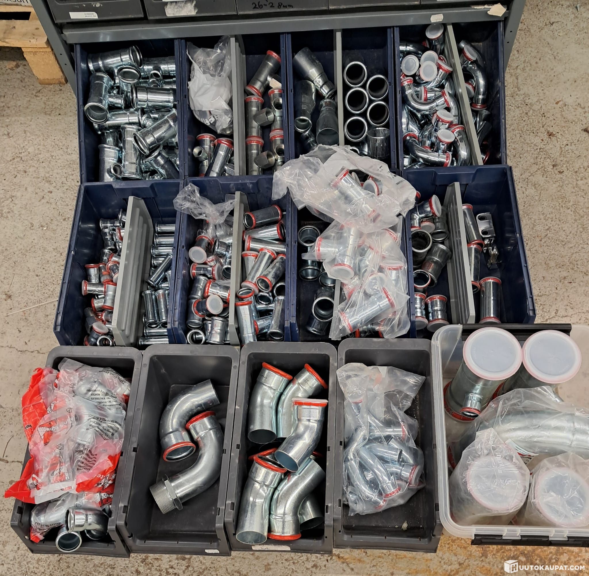 For sale: a large lot of various metal pipe fittings, threaded parts and adapters.