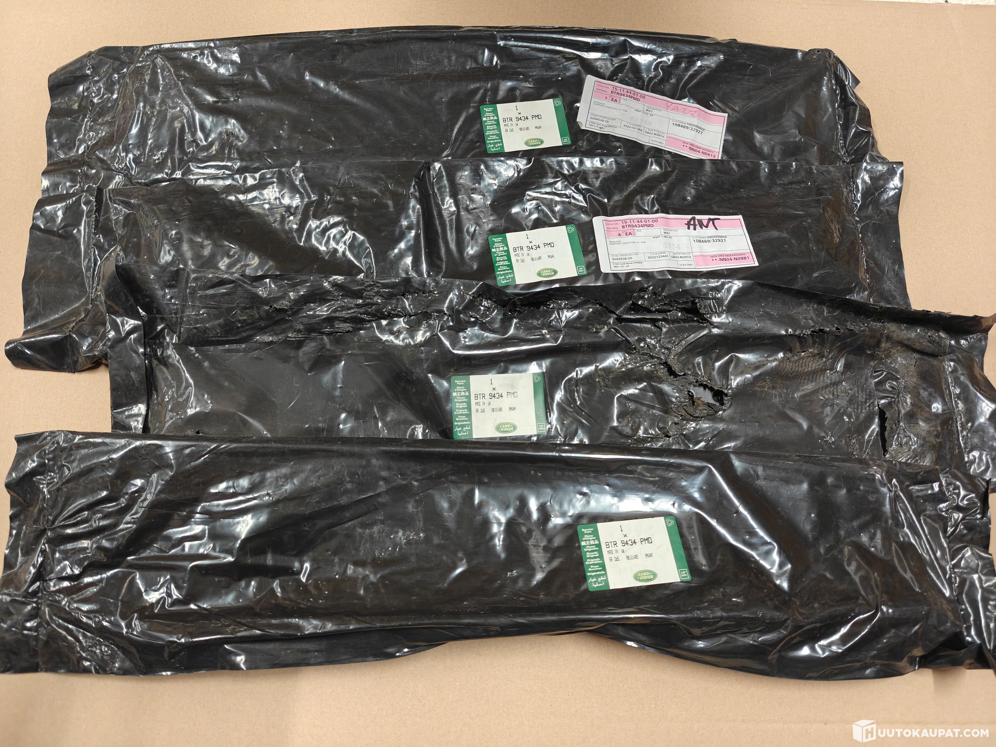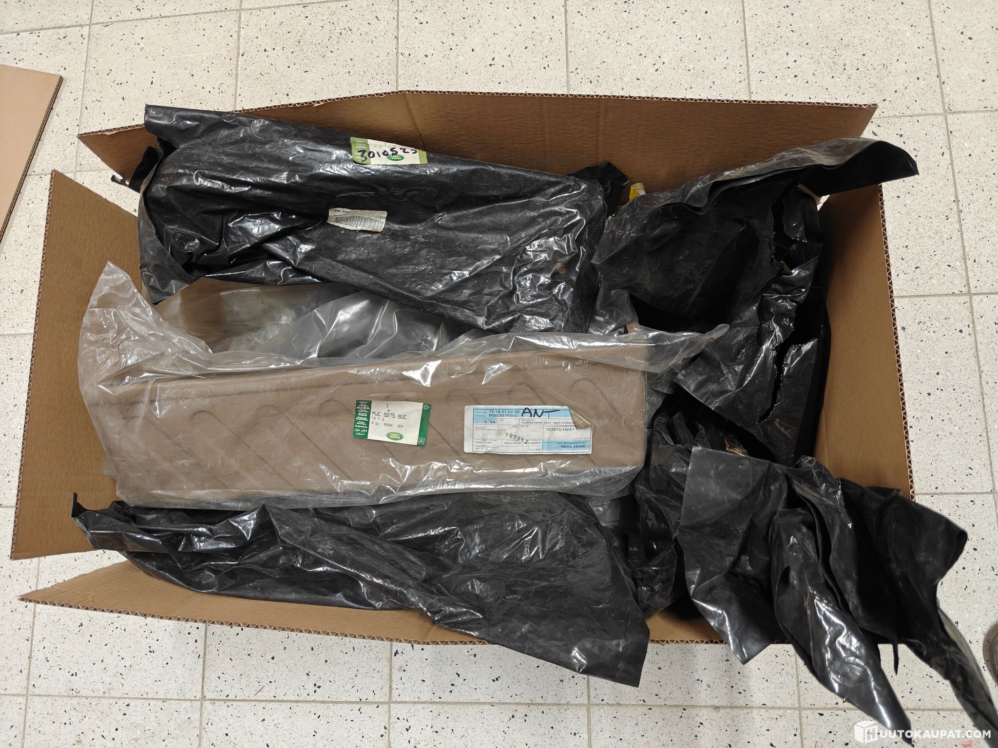 A package of various Land Rover exterior and interior parts. Below is a list of parts and their numbers. The item photos also include general views of the parts and close-ups of the product numbers on the packages. The parts are unused but have been stored for a long time, so some packages and parts have marks or dirt. Photos show examples. Many parts remain sealed in their bags and have not been opened, so they have not been inspected in detail.