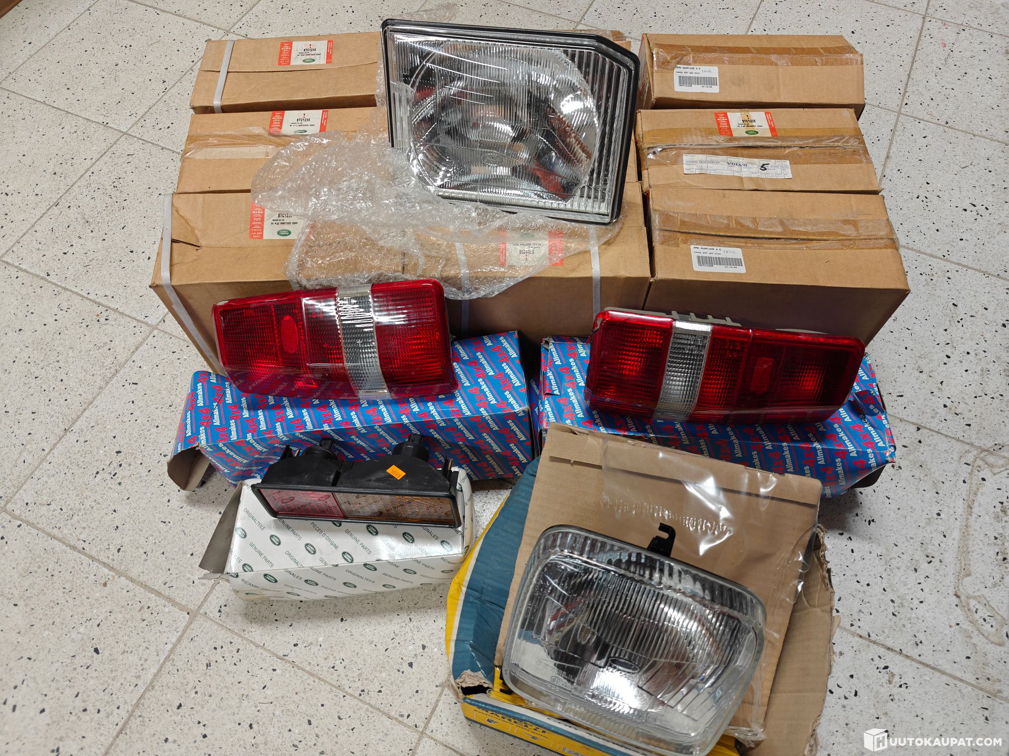 The item photos include close-ups of all the packages and their numbers, and a close-up of one Land Cruiser headlamp whose package was open.
