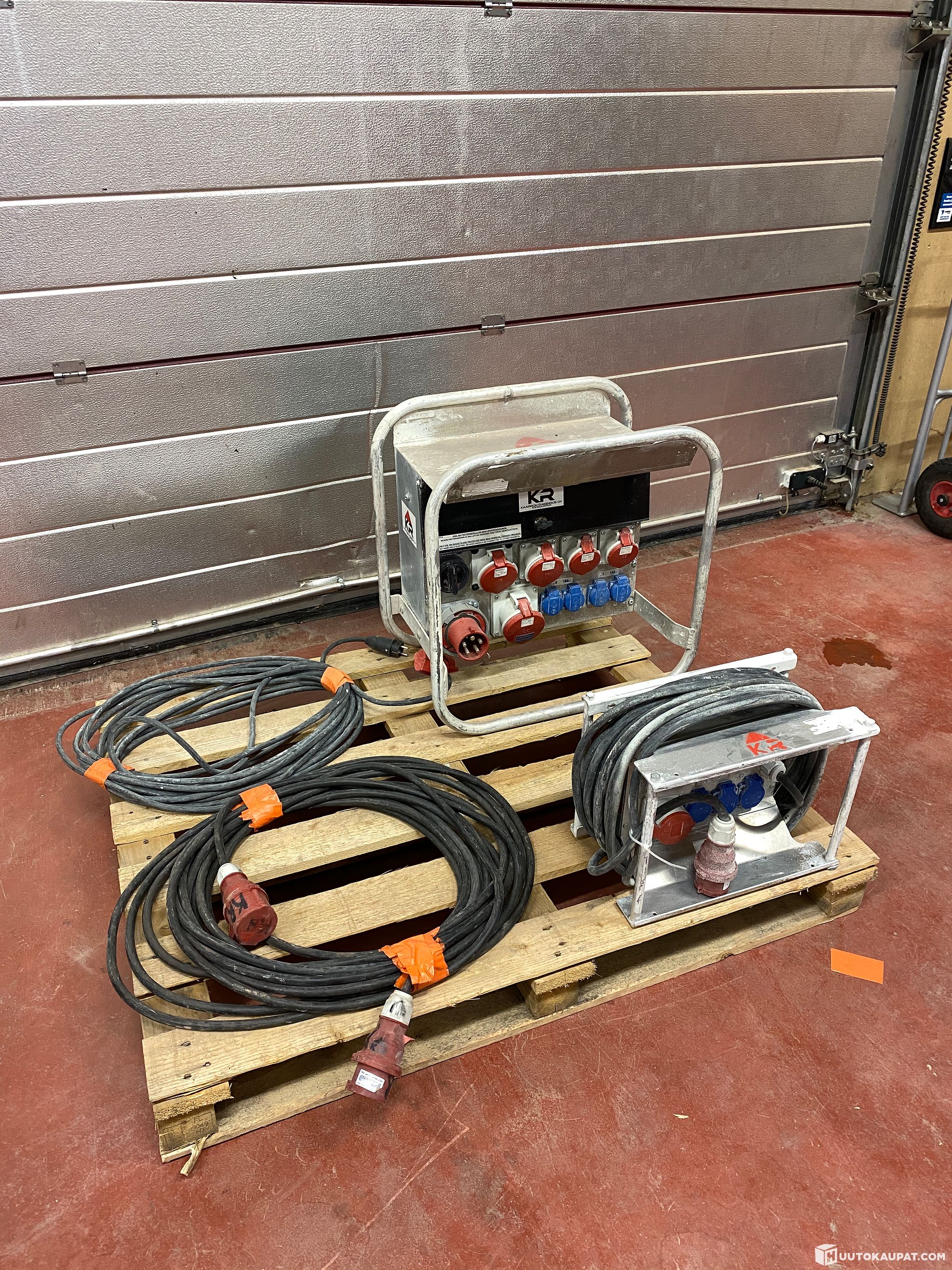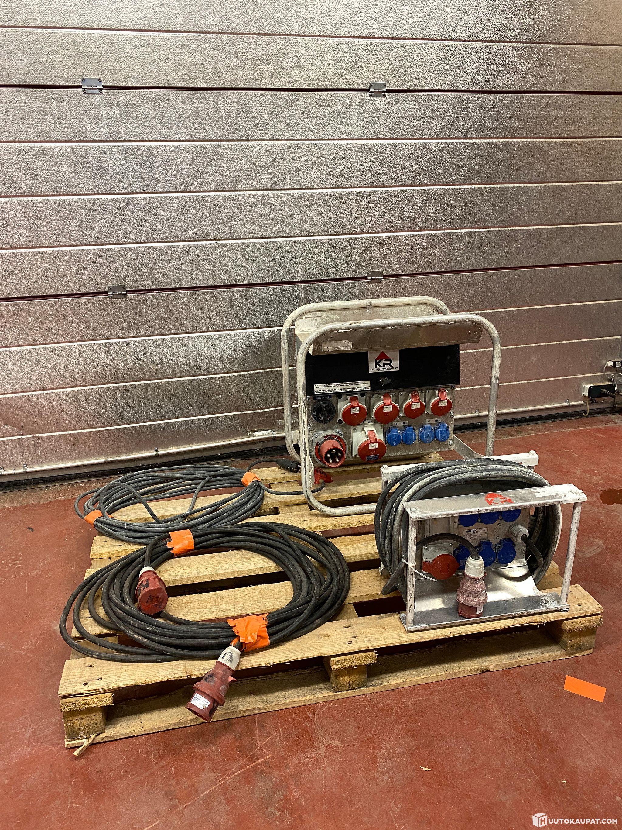 For sale: 63A and 16A site distribution units and compatible triple-socket adapters. The units have been used on construction sites.