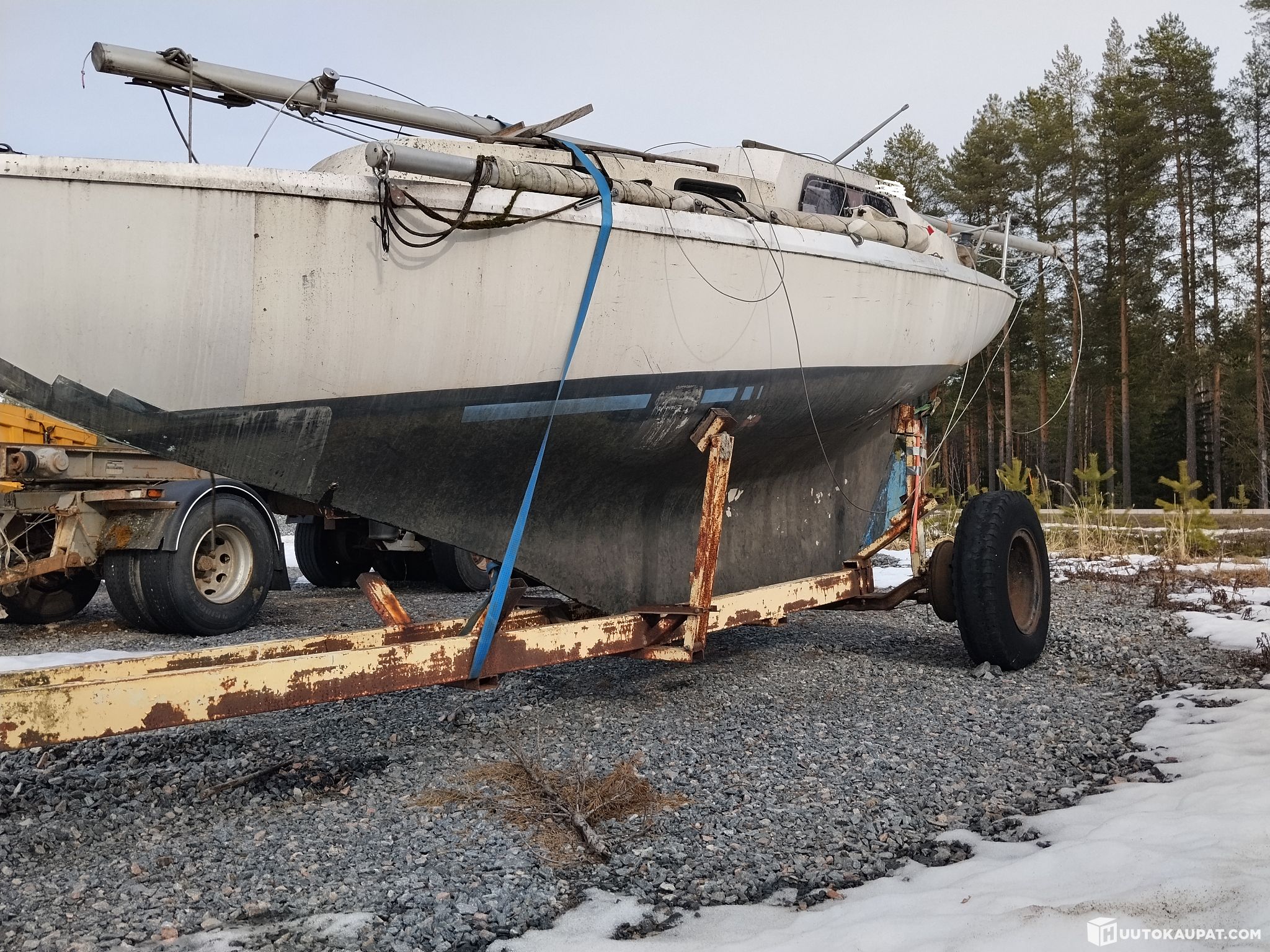 Offered: a sailboat for a project, for spare parts, as a guest cabin for the mother-in-law, to sink in a bog and become a potato cellar, or even to become a pirate ship playground for children in the yard. Hull is fibreglass and in surprisingly good condition. So it might even float.
