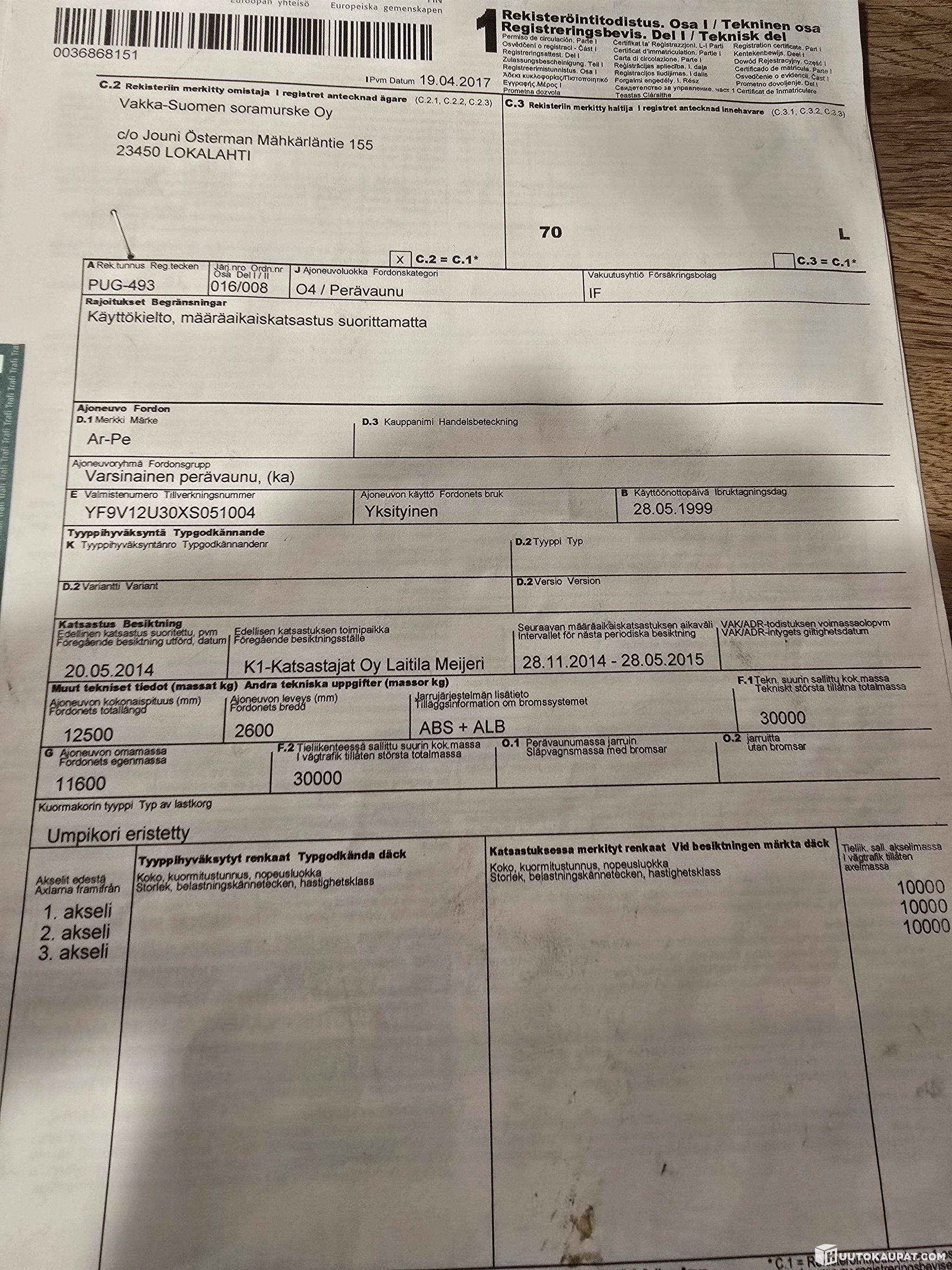 AE Kuljetus Oy lists, Huutokaupat.com sells