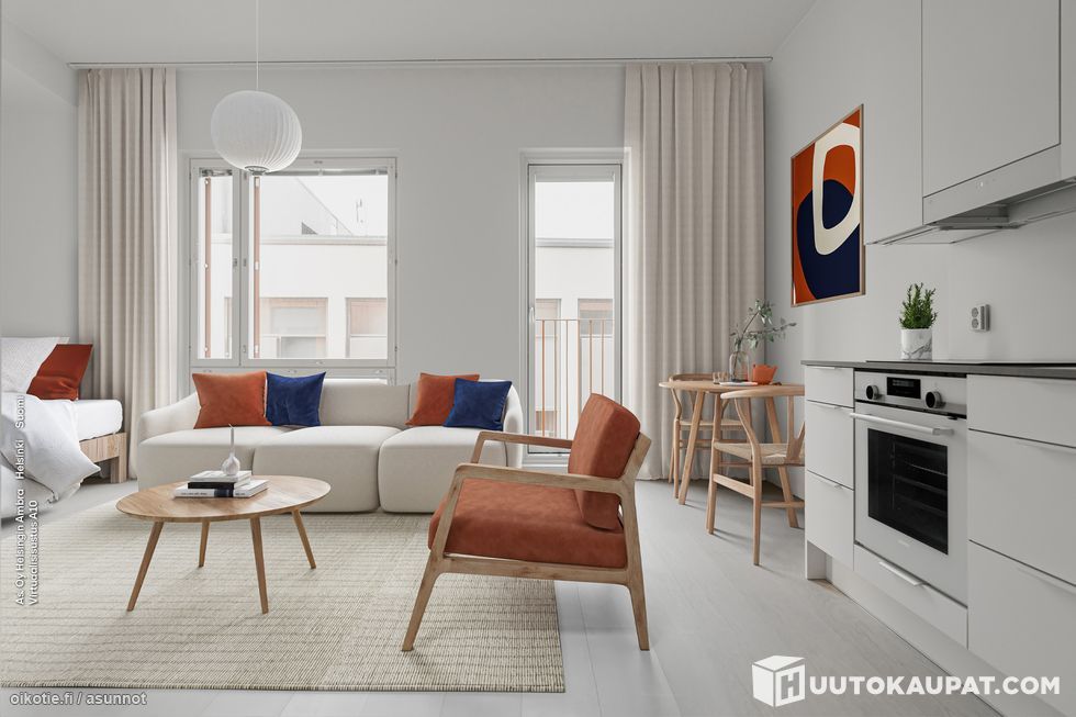 The property is in a top location close to Saukonpaaden Park and the sea. It is a short walk to Ruoholahti metro station and tram connections are very efficient. The area offers excellent services and sports facilities.