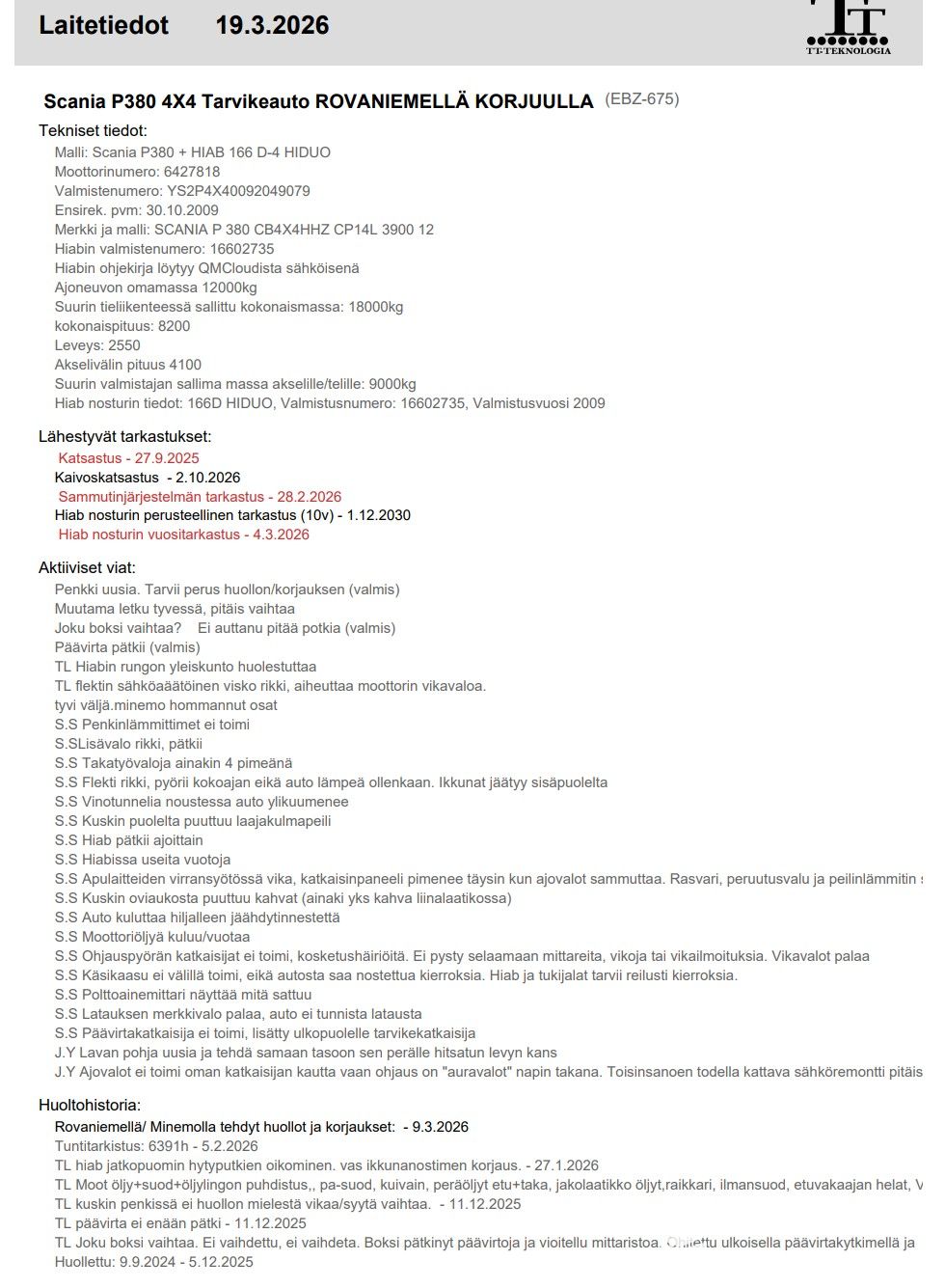 Technical details: Model: Scania P380 4X4 + HIAB 166 D-4 HIDUO