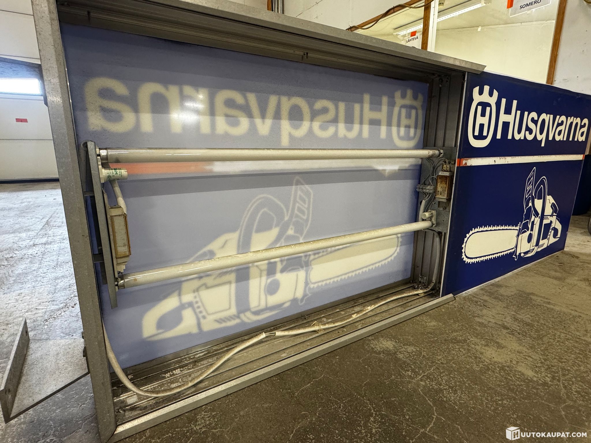 Husqvarna illuminated sign, previously removed from working use. No guarantee of operation.
