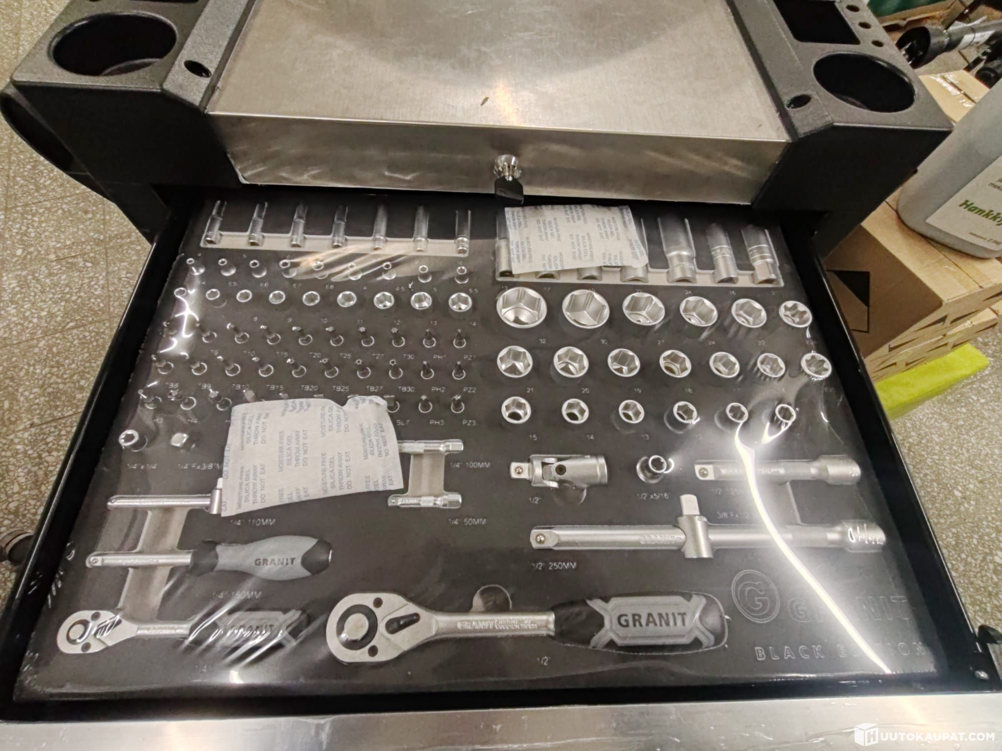 The trolley's robust castors make it easy and effortless to move, so you can transport tools as needed. Six sliding ball-bearing drawers offer ample storage and allow simple tool organisation. The drawers are lockable, ensuring your tools remain secure and in order while on the move.