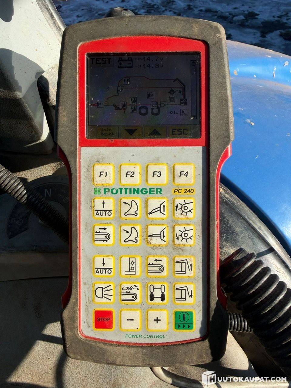 Blades OK and blade springs in good condition; spare blades included. Tyres renewed as needed. Pickup has a newer guide and the machine is ISOBUS-compatible.