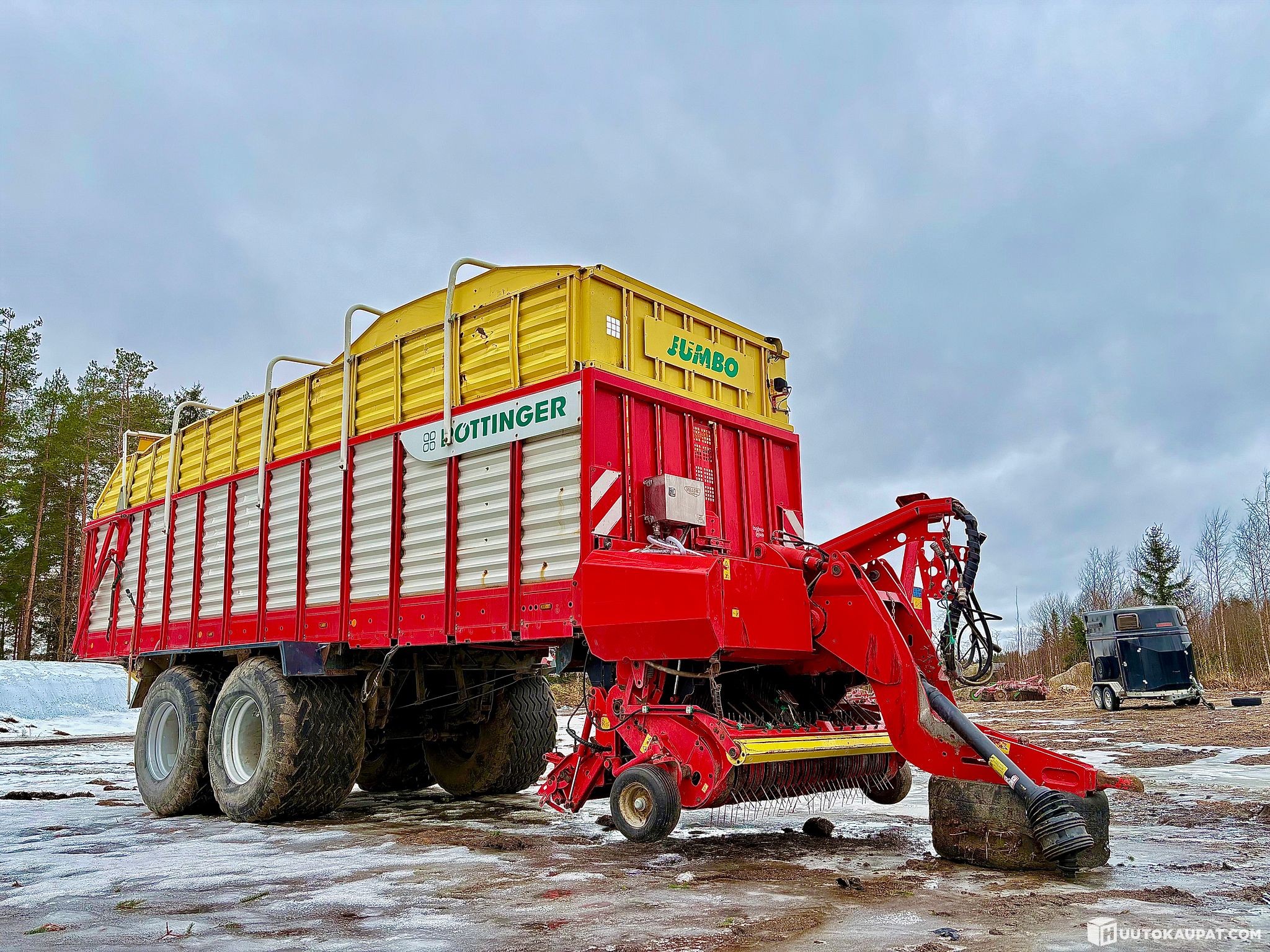 Clean and high-quality Austrian Pöttinger Jumbo 8010 L with tandem axle.