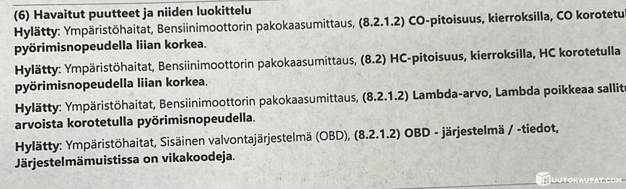 The car failed its inspection due to environmental emissions (see picture for details)