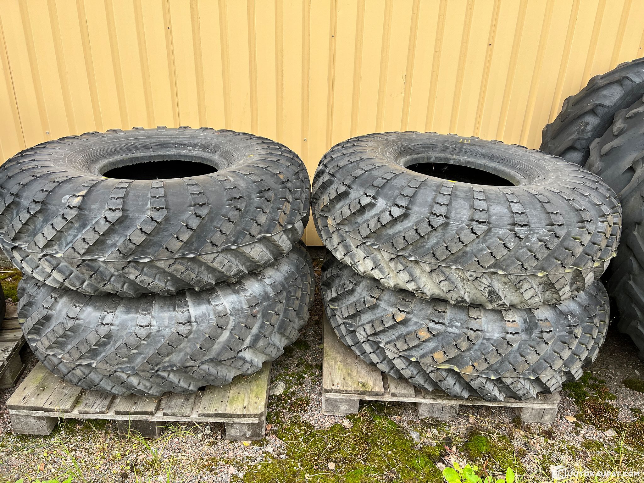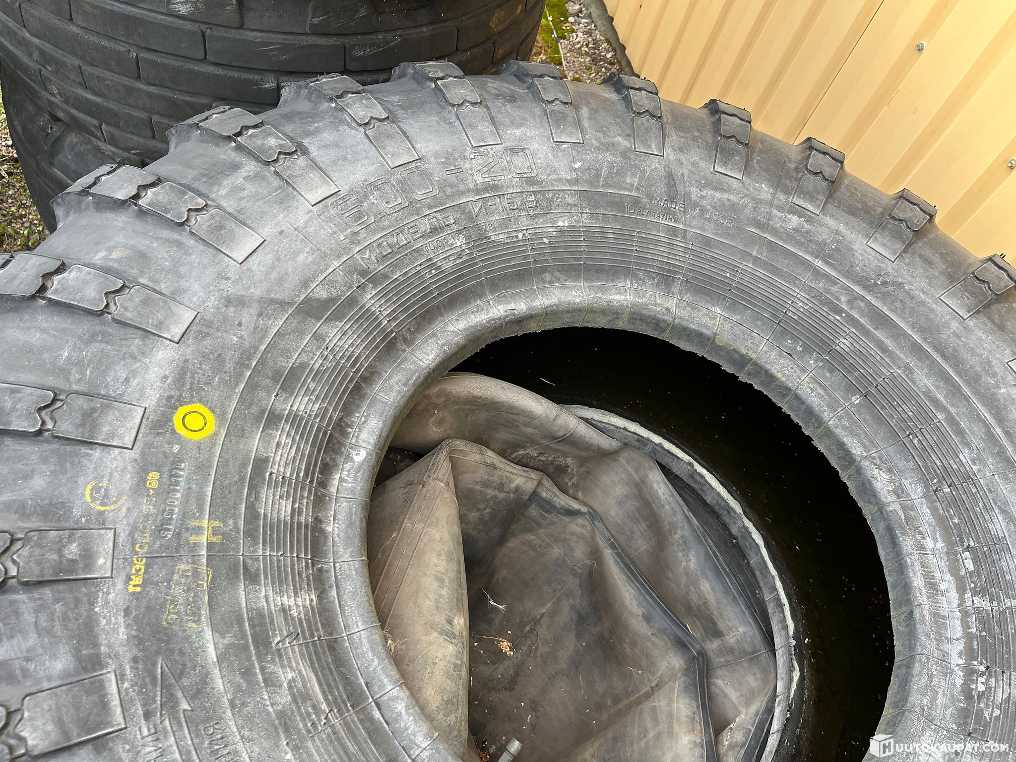 4 unused tyres, no rims. Size 16.00-20 (approx. 406 × 508 mm).