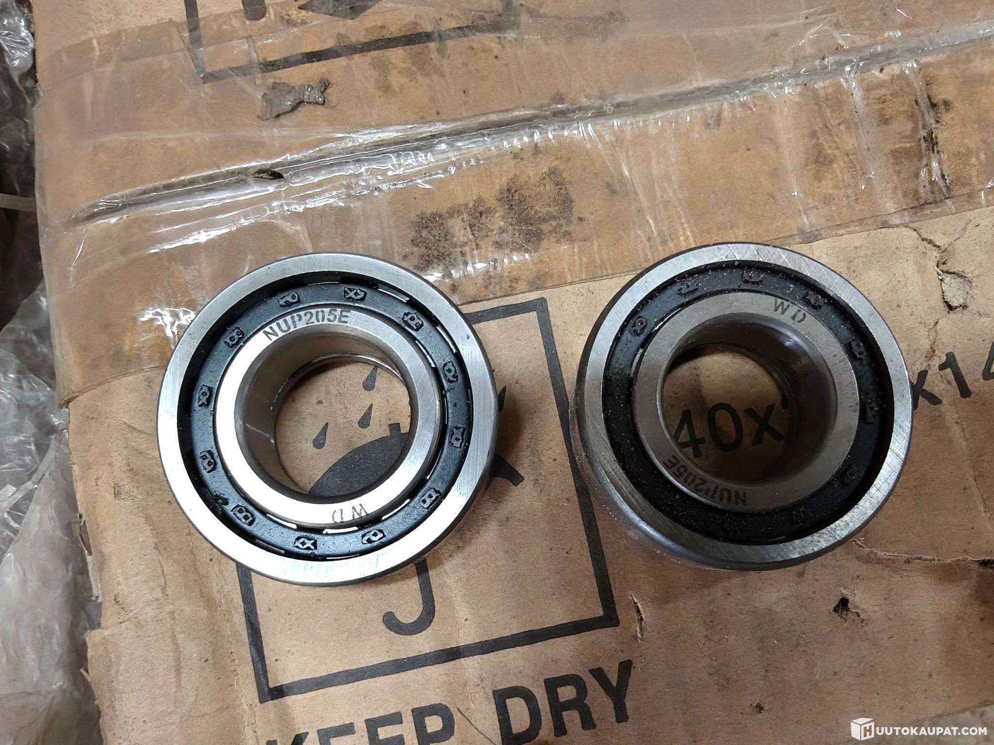 Single-row cylindrical roller bearing: rollers attached to the outer cage, the inner ring floats in the opposite direction. The floating movement in the other direction is locked with a separate plate, which gives the bearing the model designation NUP and a steel cage.
