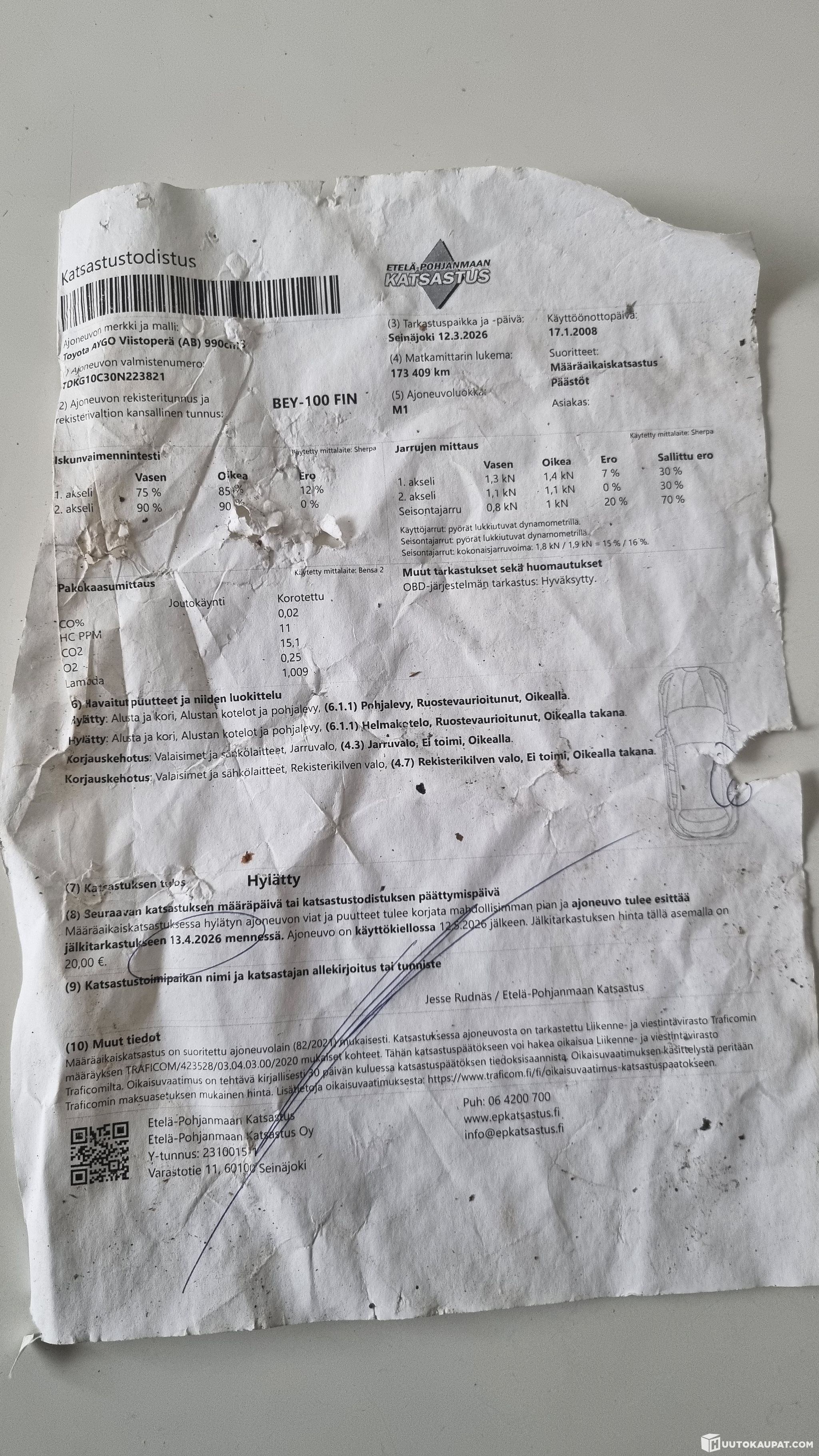 You can still drive it for a short time before the re-inspection. Requires sheet‑metal work to the sill box and similar repairs. The MOT fault list is shown in the photos. Otherwise in tidy condition with good studded tyres; the old winter tyres with rims are included.