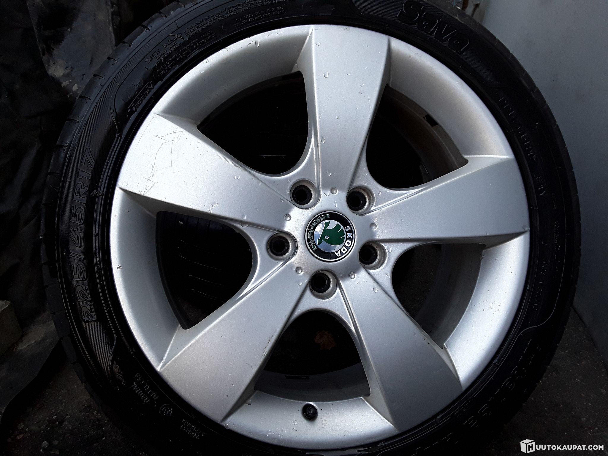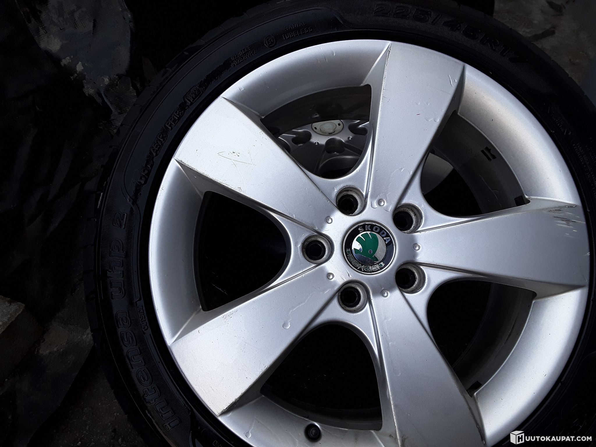 Curb marks; one centre cap missing (Skoda logo)