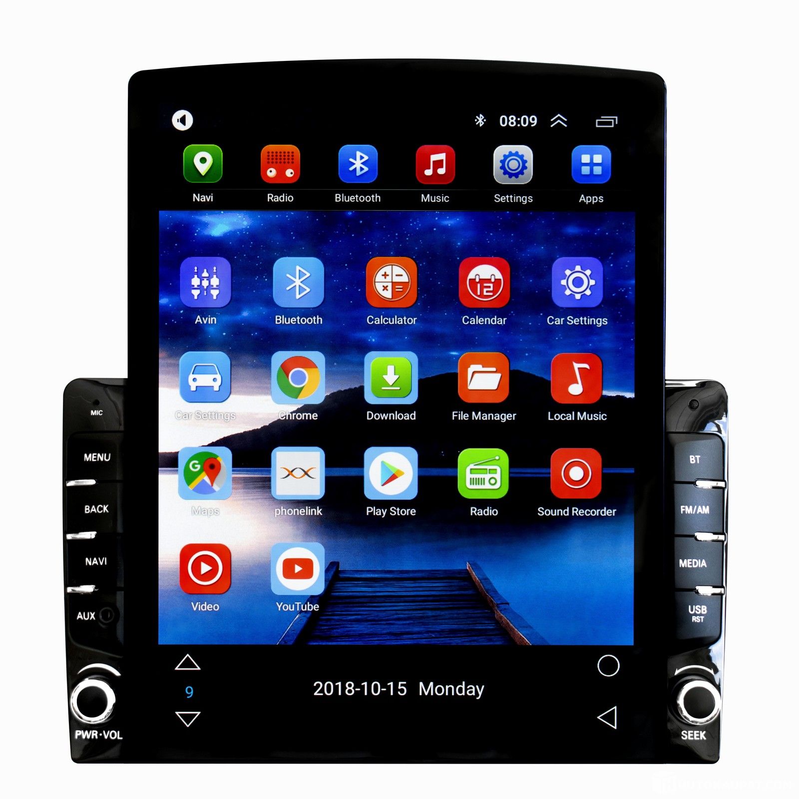 Very nice car stereo with a large 24.6 cm (9.7") vertical display, styled like a Tesla.