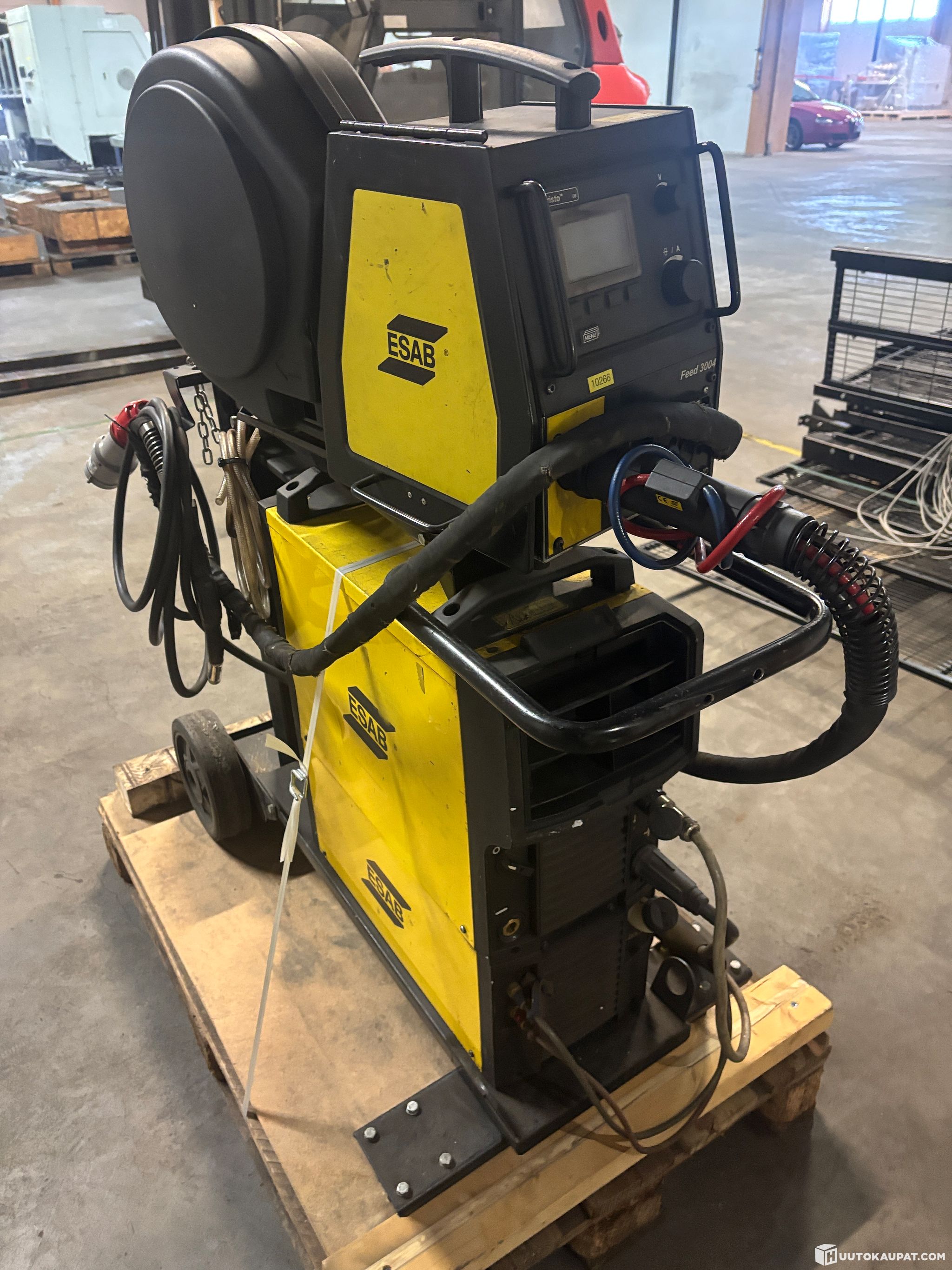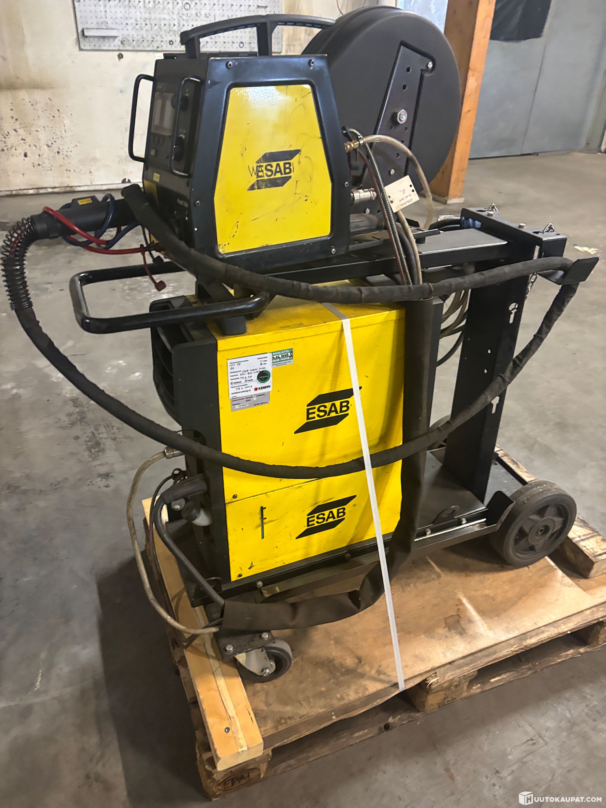 For sale: a high-quality industrial ESAB Aristo Mig 4004i Pulse welding power source together with an ESAB Aristo Feed 3004w wire feeder. This is a professional, inverter-based MIG/MAG welding system designed for demanding production, machine shops and welding of steel, stainless steel and aluminium. The package is known for a stable arc, good pulse welding characteristics and a high duty cycle. According to ESAB, the 4004i Pulse is a multi-process inverter power source with a high duty cycle, wide mains voltage tolerance and pre-programmed synergy lines for different materials and filler wires.