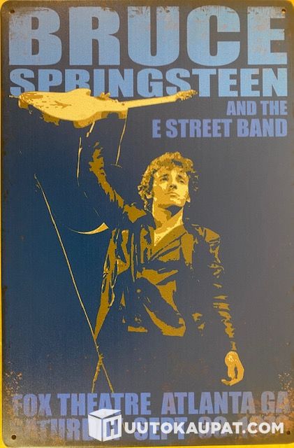 New band-themed posters as metal signs.