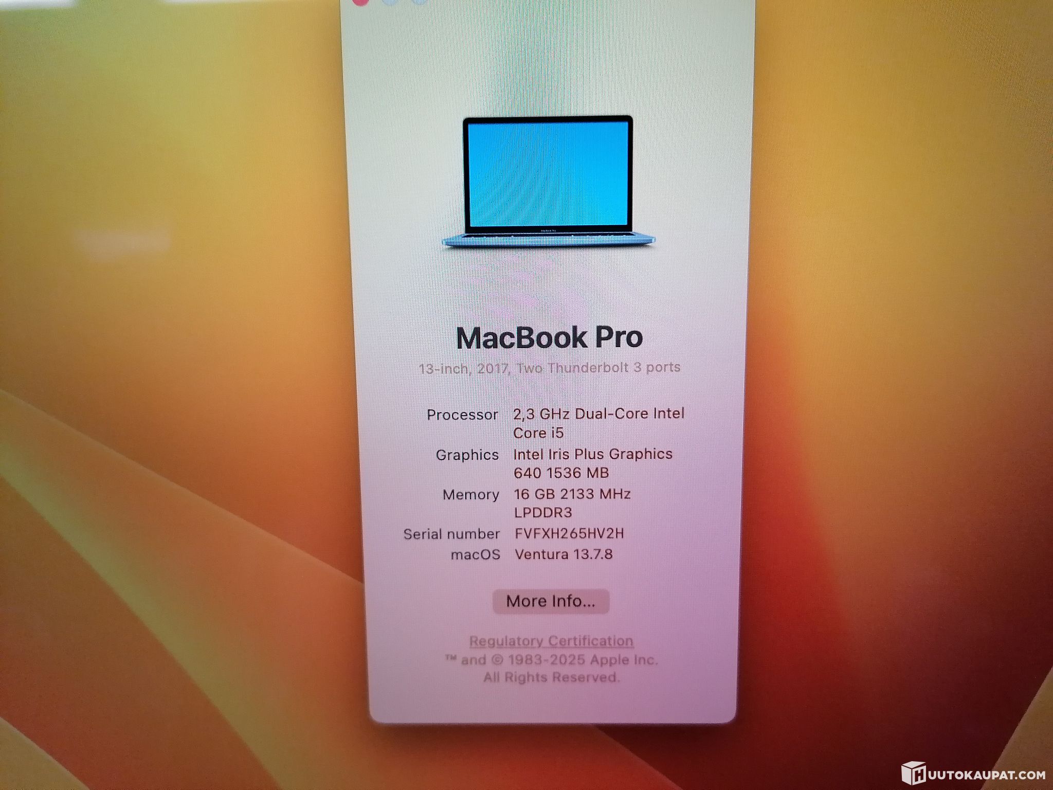 Serial number: FVFXH265HV2H