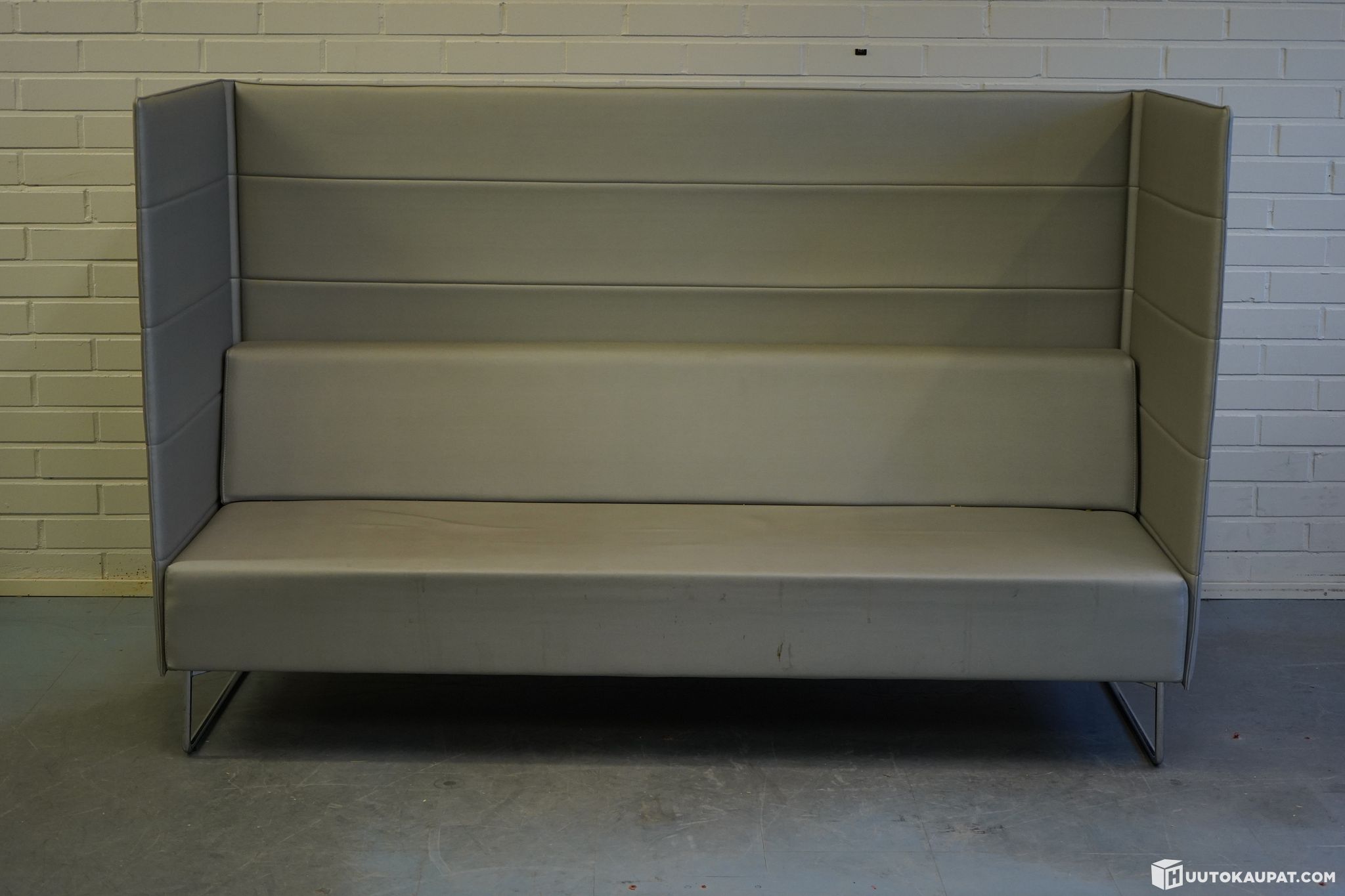 Grey Inclass Tetris sofa. Upholstered in grey faux leather.