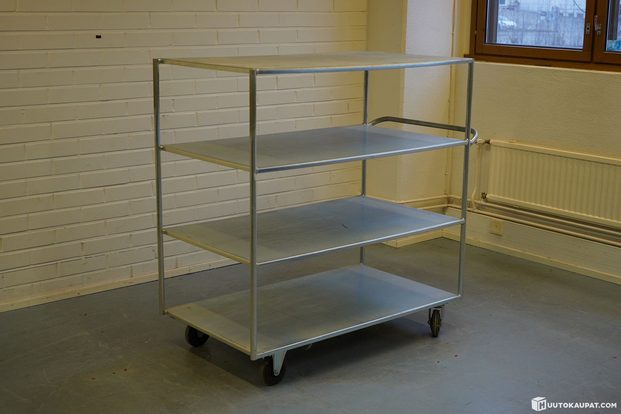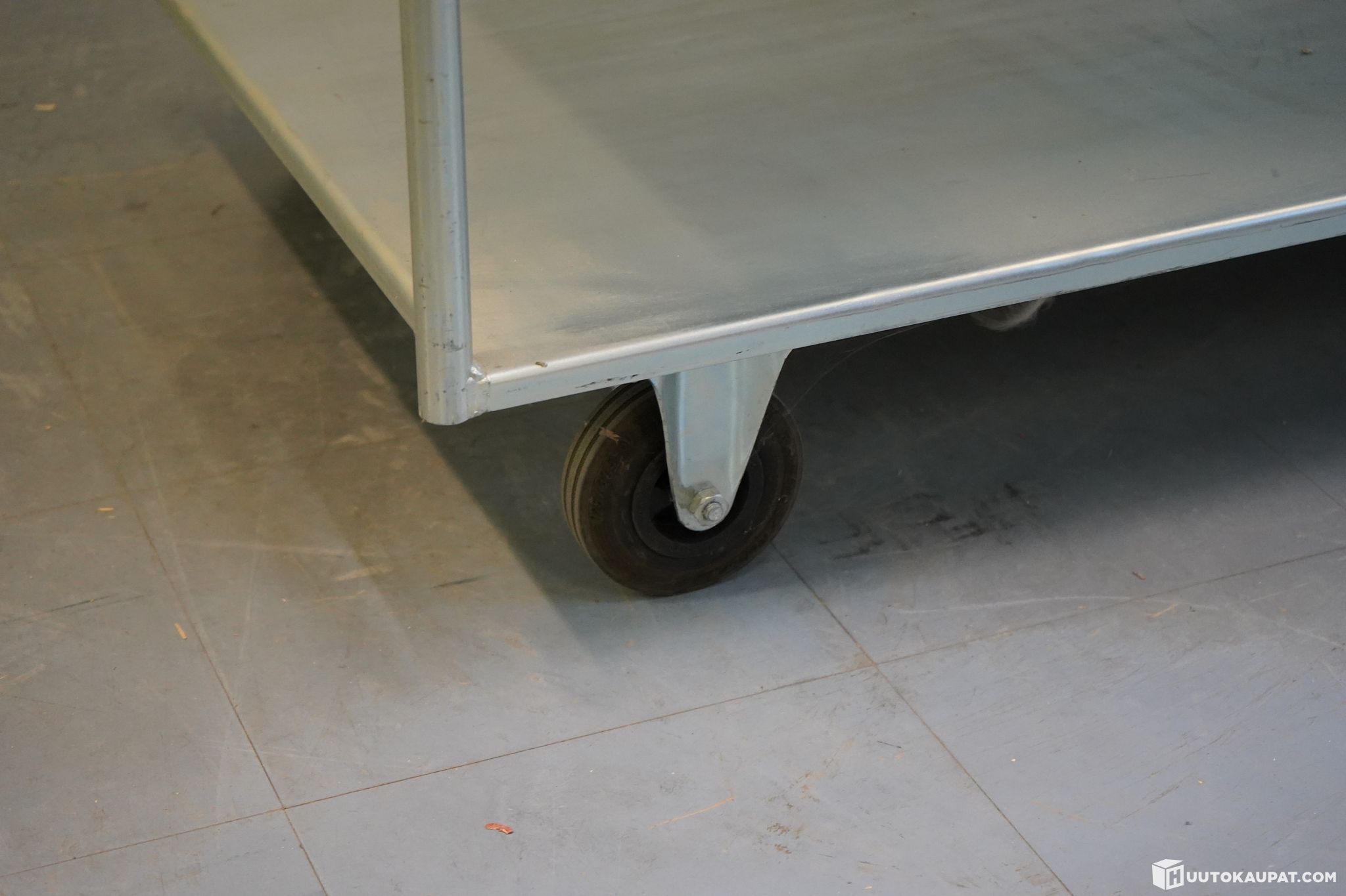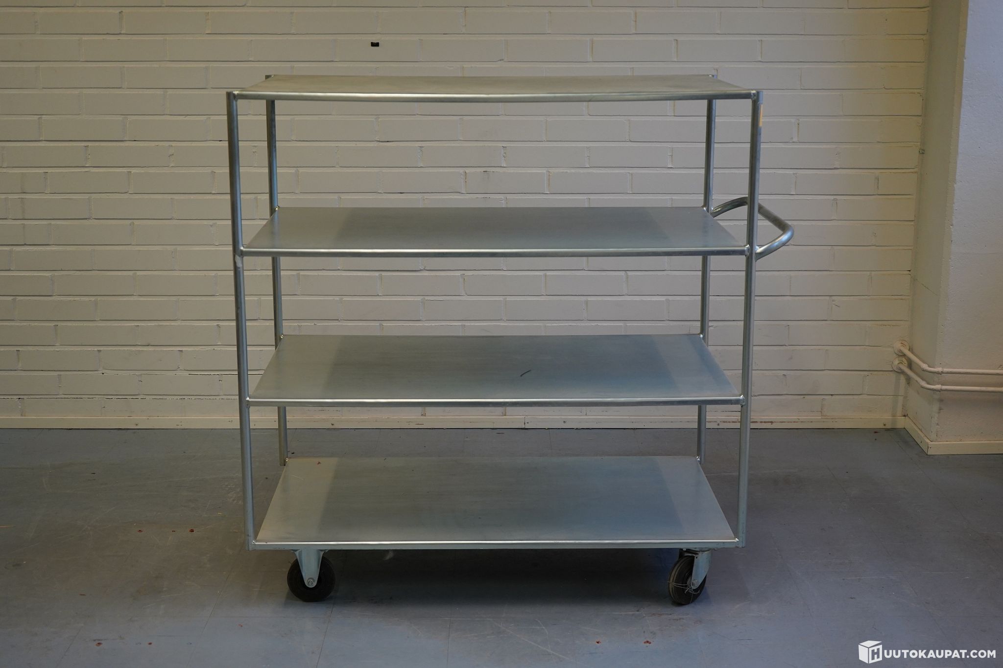 Sturdy and practical flat trolley made of stainless steel. Ideal for storage, kitchens, production facilities or serving use.