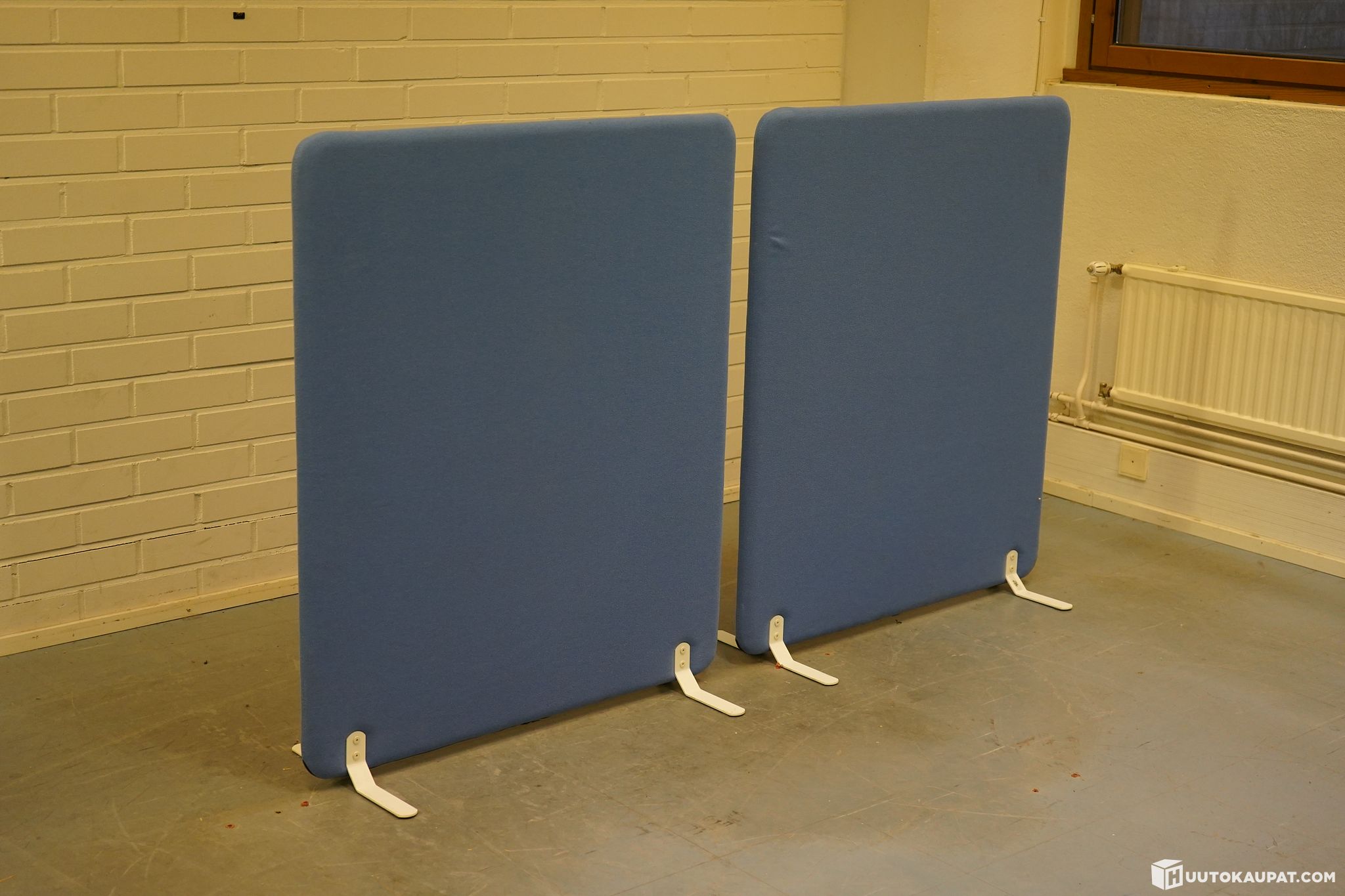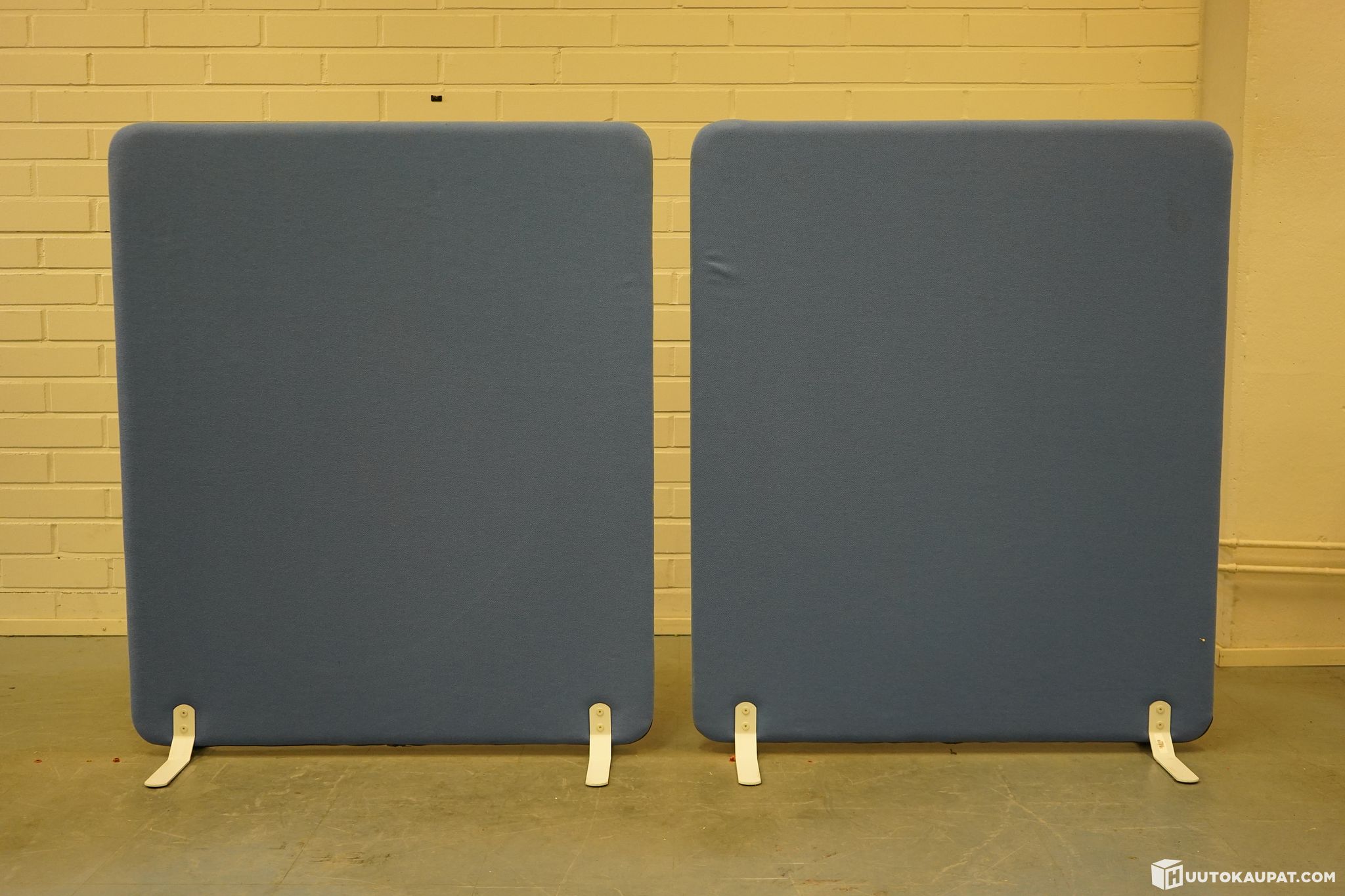 Two sound-absorbing floor screens.