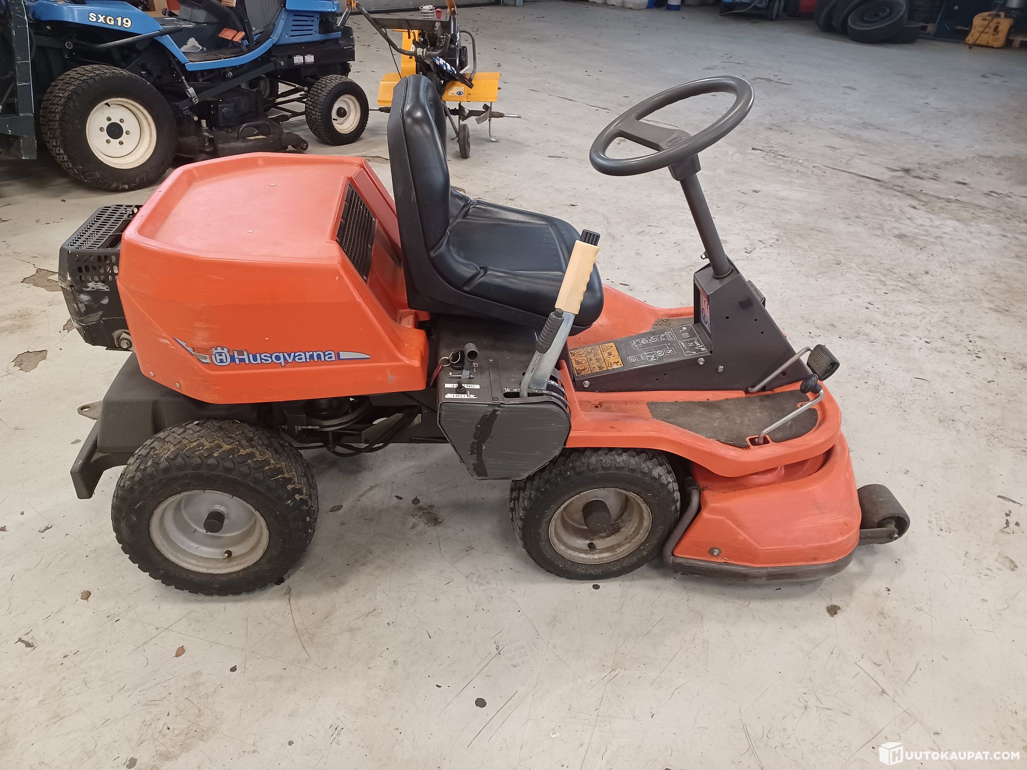 The City of Ylivieska is selling a decommissioned Husqvarna Rider 13 ride-on mower. Exact model year is not known but approximately 2000–2002. Electric start and hydrostatic drive. A working machine that has mainly been used as a spare in recent years. The engine was replaced with a new one at some point.