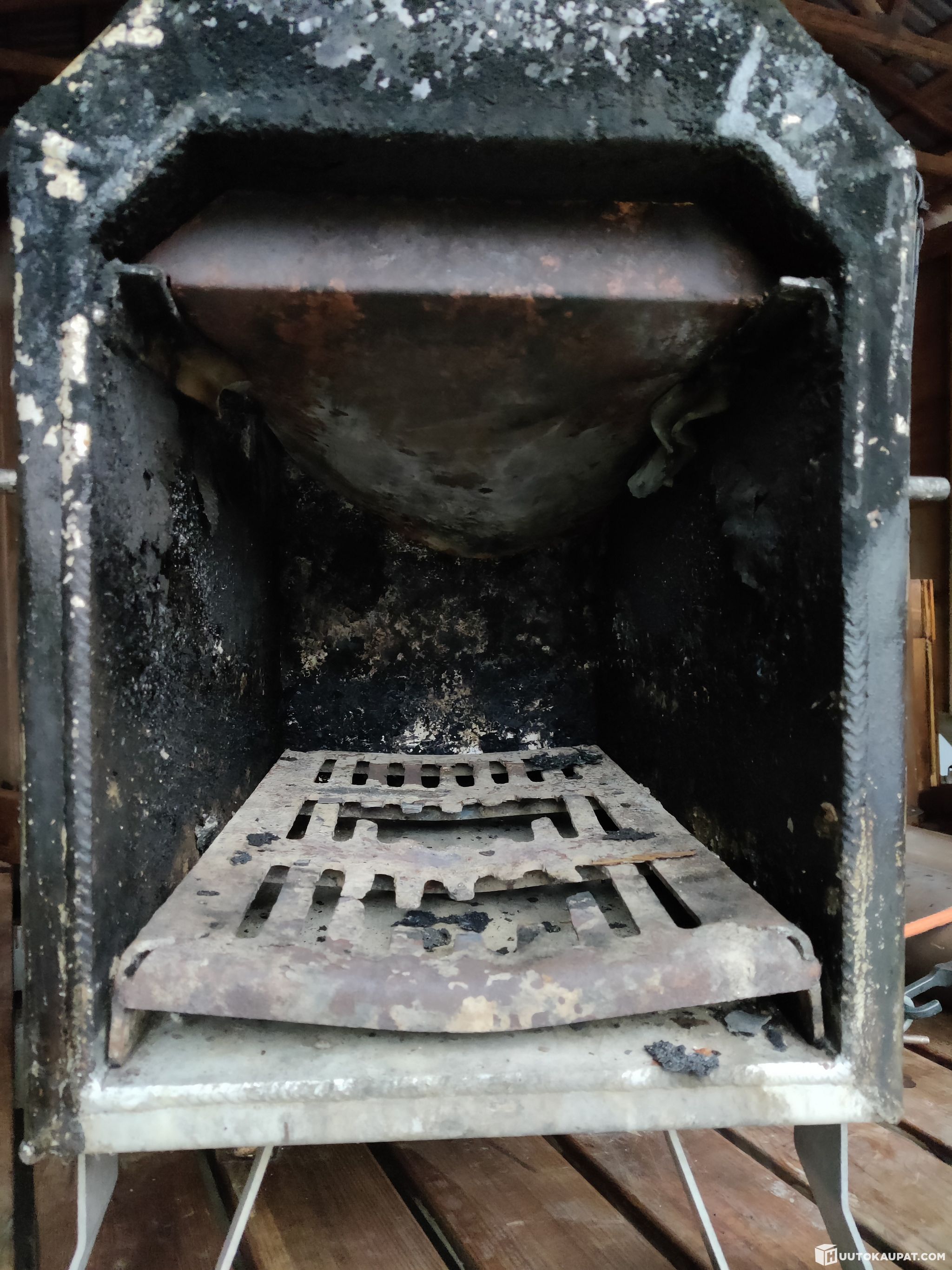 The upper fire plate inside the stove is bent and the grate is worn. The stove does not leak water.