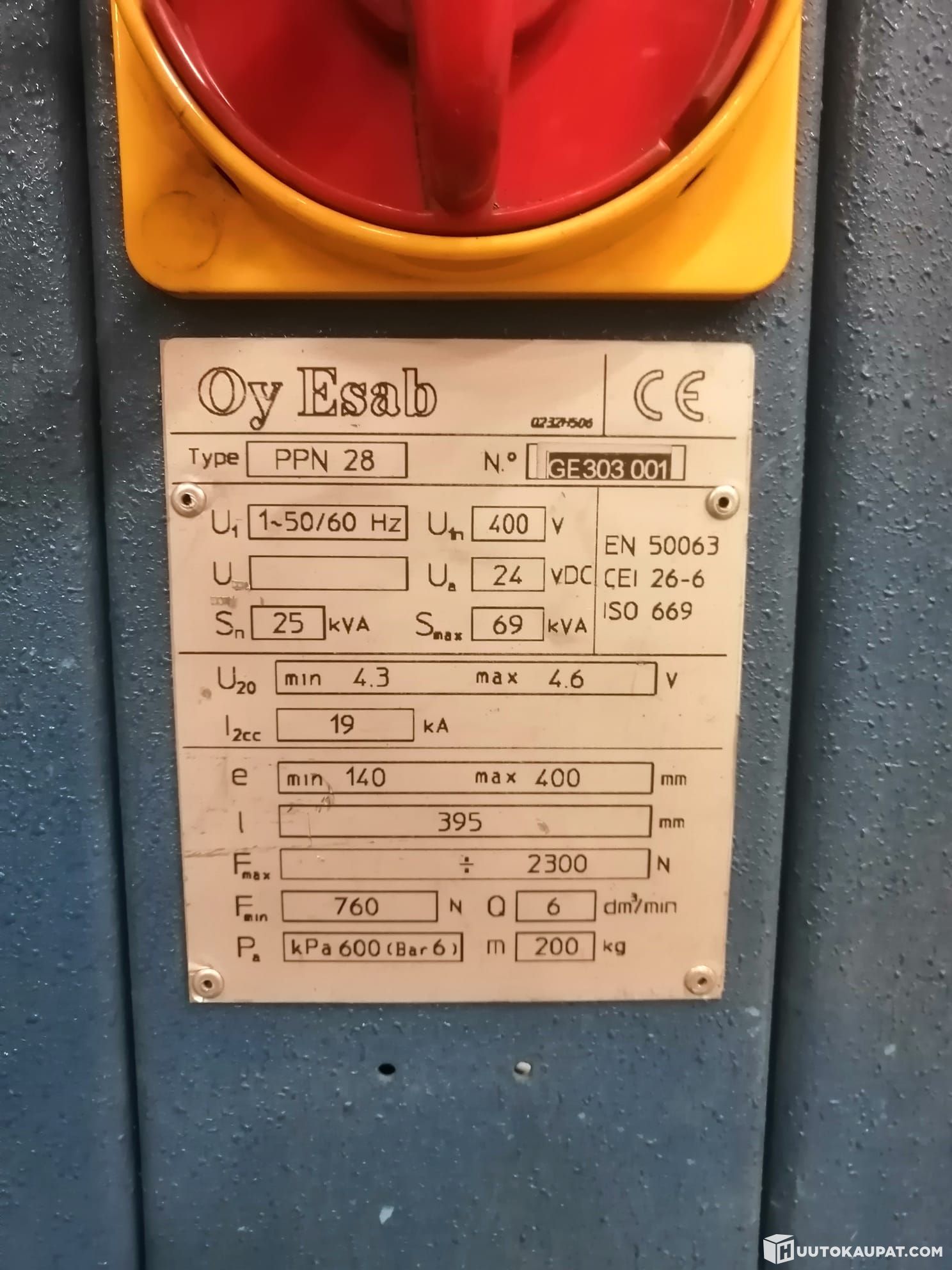 For sale: a functional and heavy-duty Oy Esab PPN 28 spot welding machine / resistance welding press for industrial use.