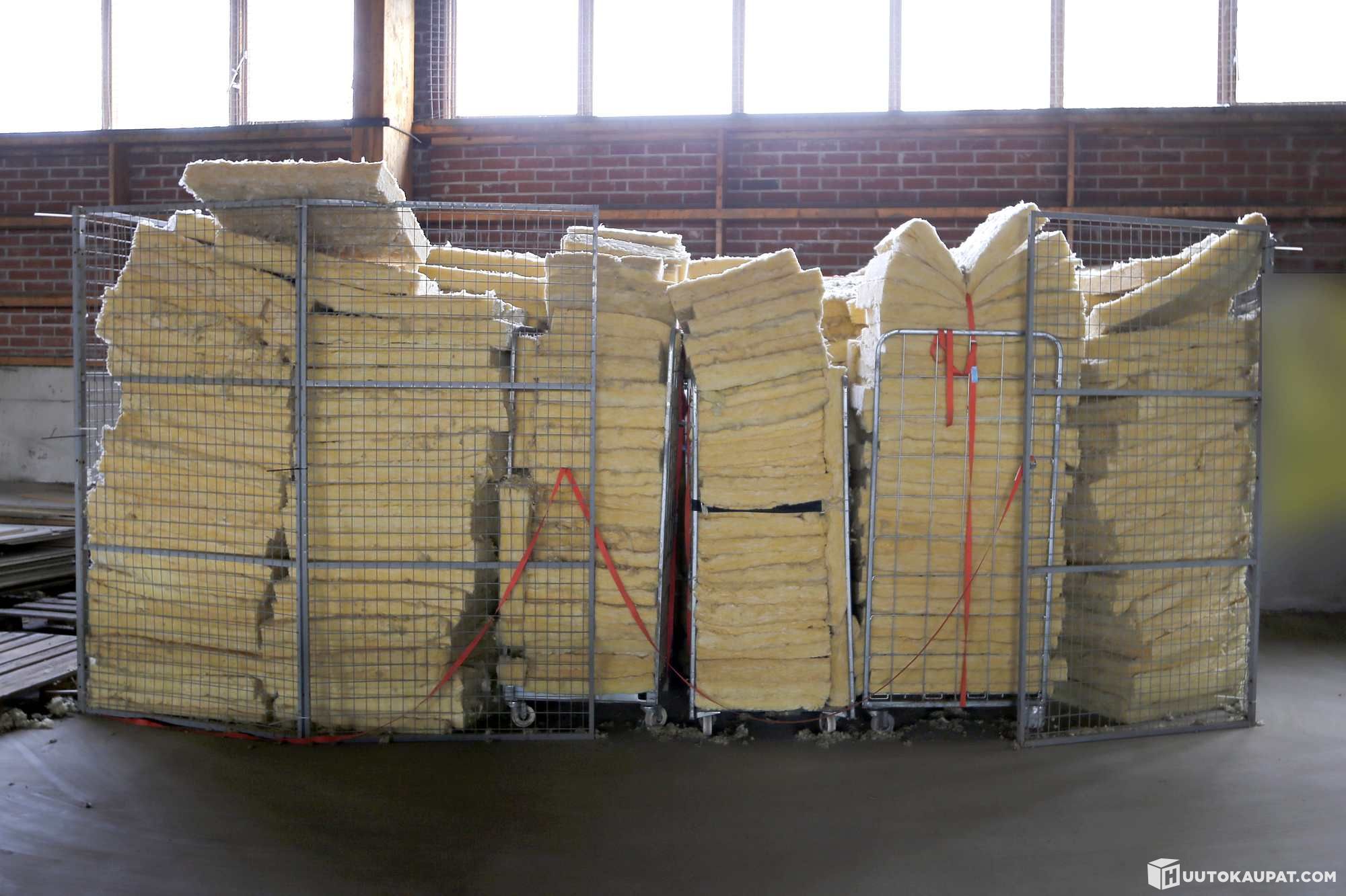 Used insulation wool approx. 30 m³ – all wool inside the cage. Cage size approx. 3 m x 5 m – height approx. 2 m