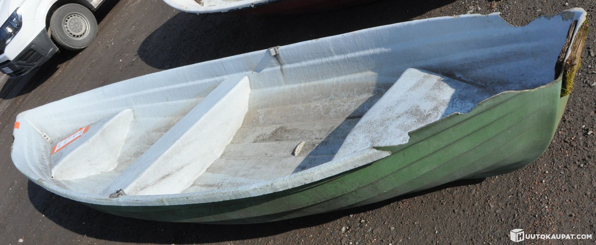 Boat: moss-green exterior, grey interior