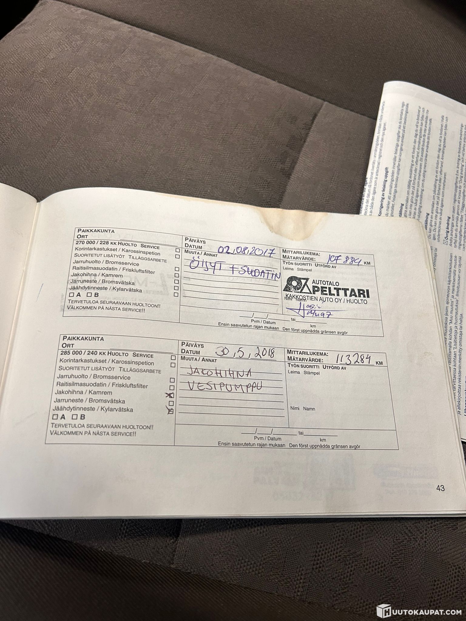 Timing belt and water pump replaced May 2018 at 113,000 km