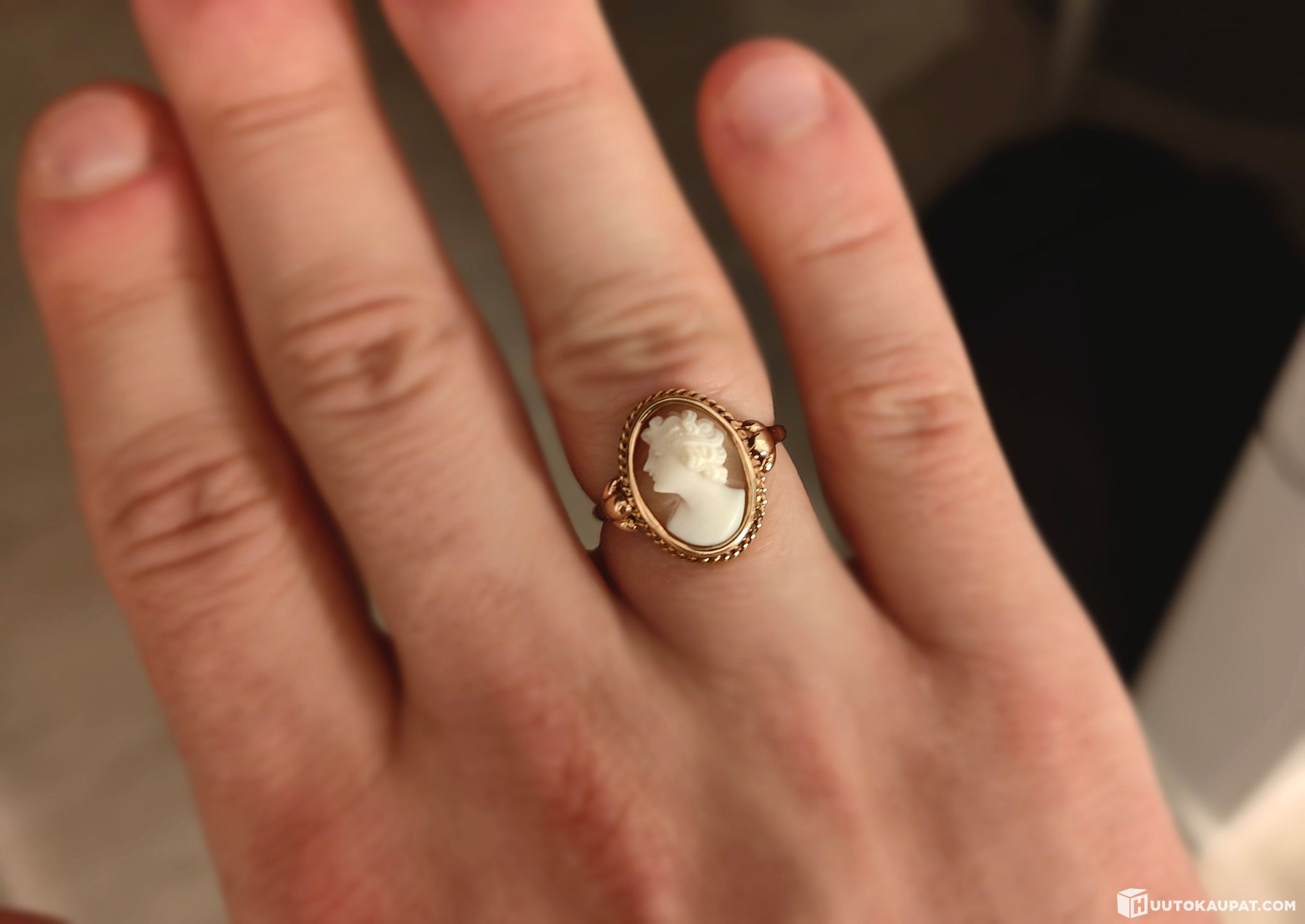 🟡 Magnificent Finnish 14k rose-gold cameo ring from 1952! A truly stylish carving that has been preserved excellently.