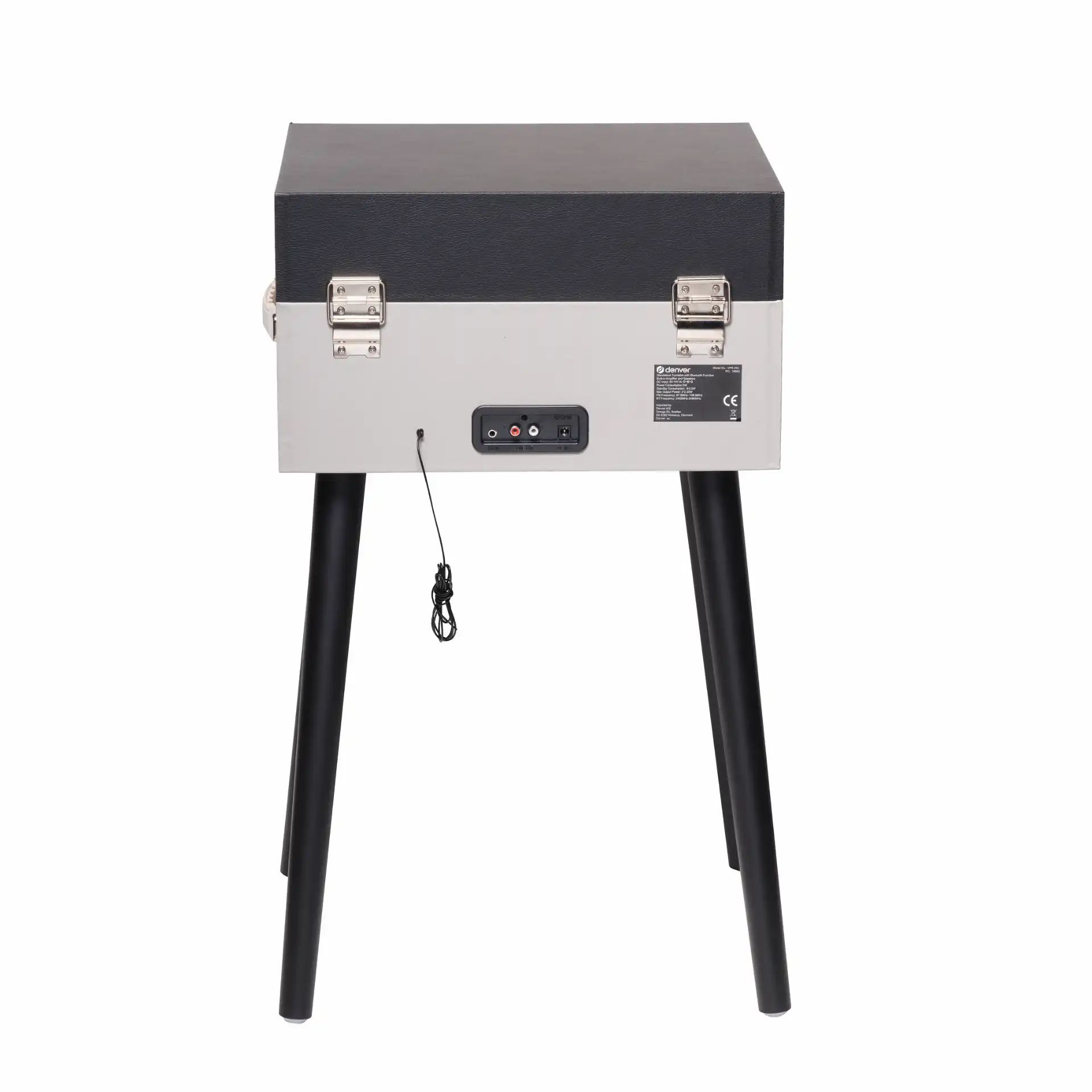 Retro charm meets portability in a stylish suitcase chassis with matching black legs.