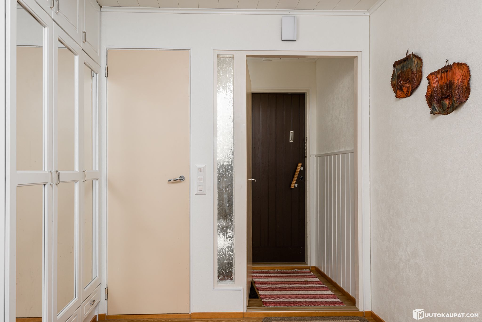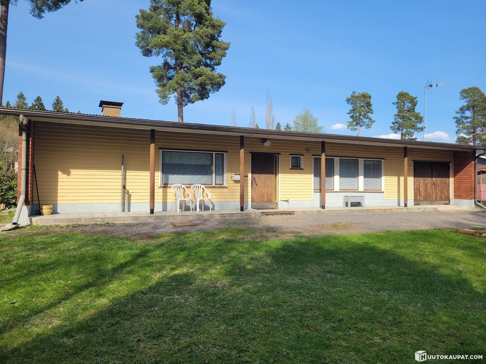Three bedrooms, living room, kitchen, washroom, sauna and separate WC, as well as a garage and heated storage.