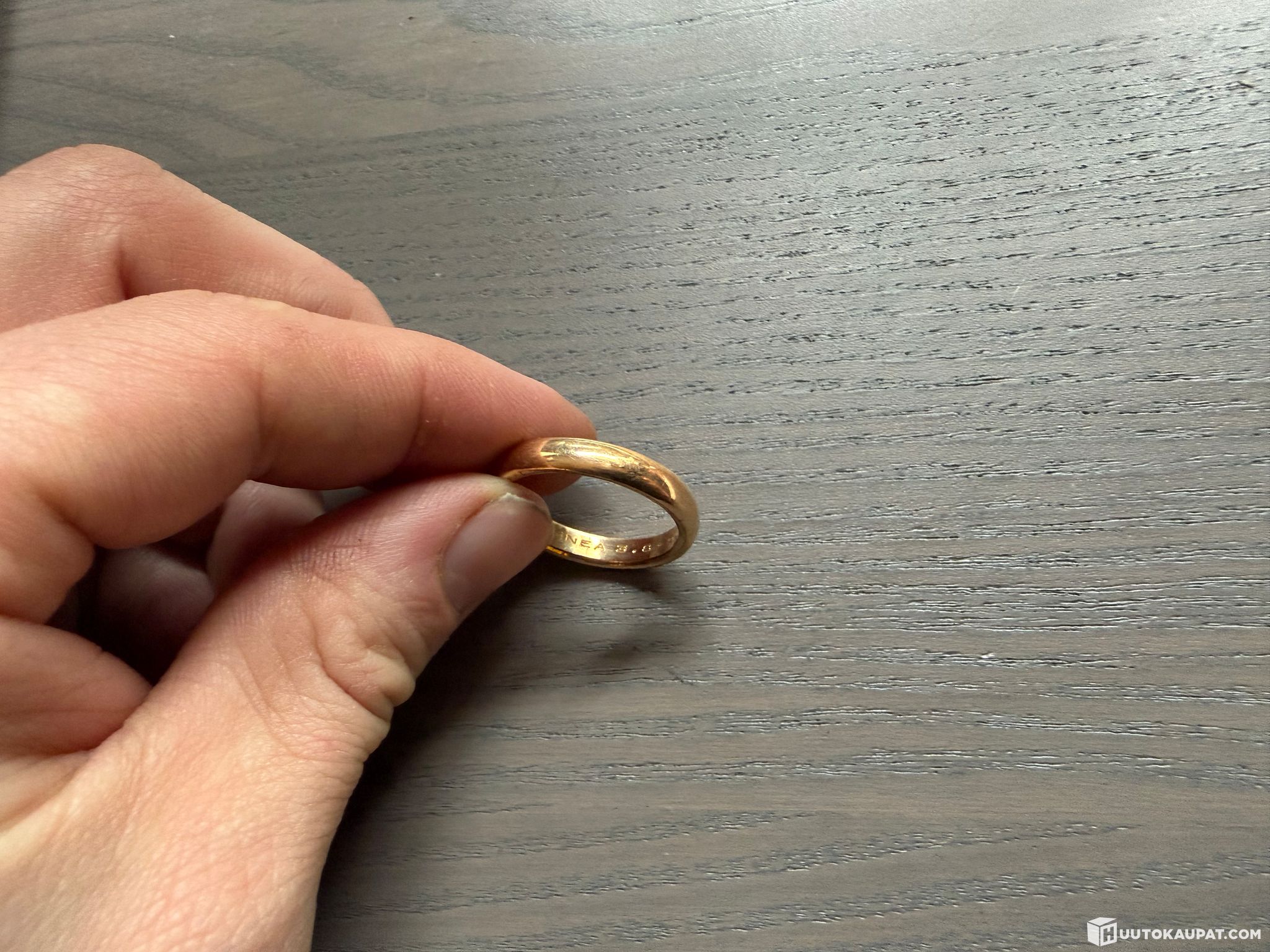 The estate is selling the plain gold ring shown in the pictures.