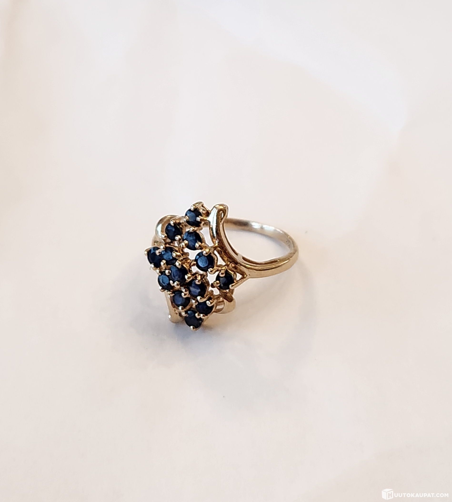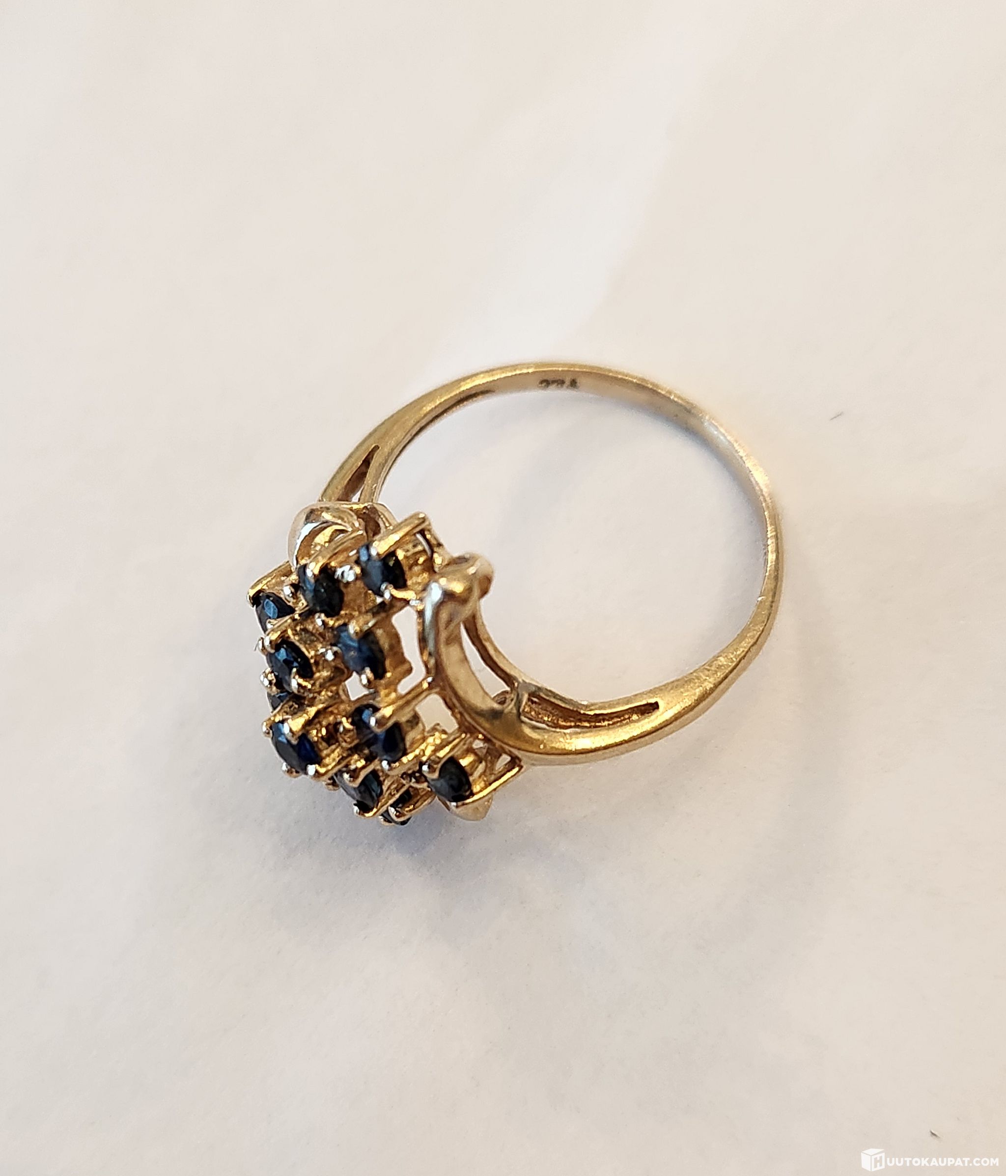 Gold blue sapphire ring - 13 blue sapphires