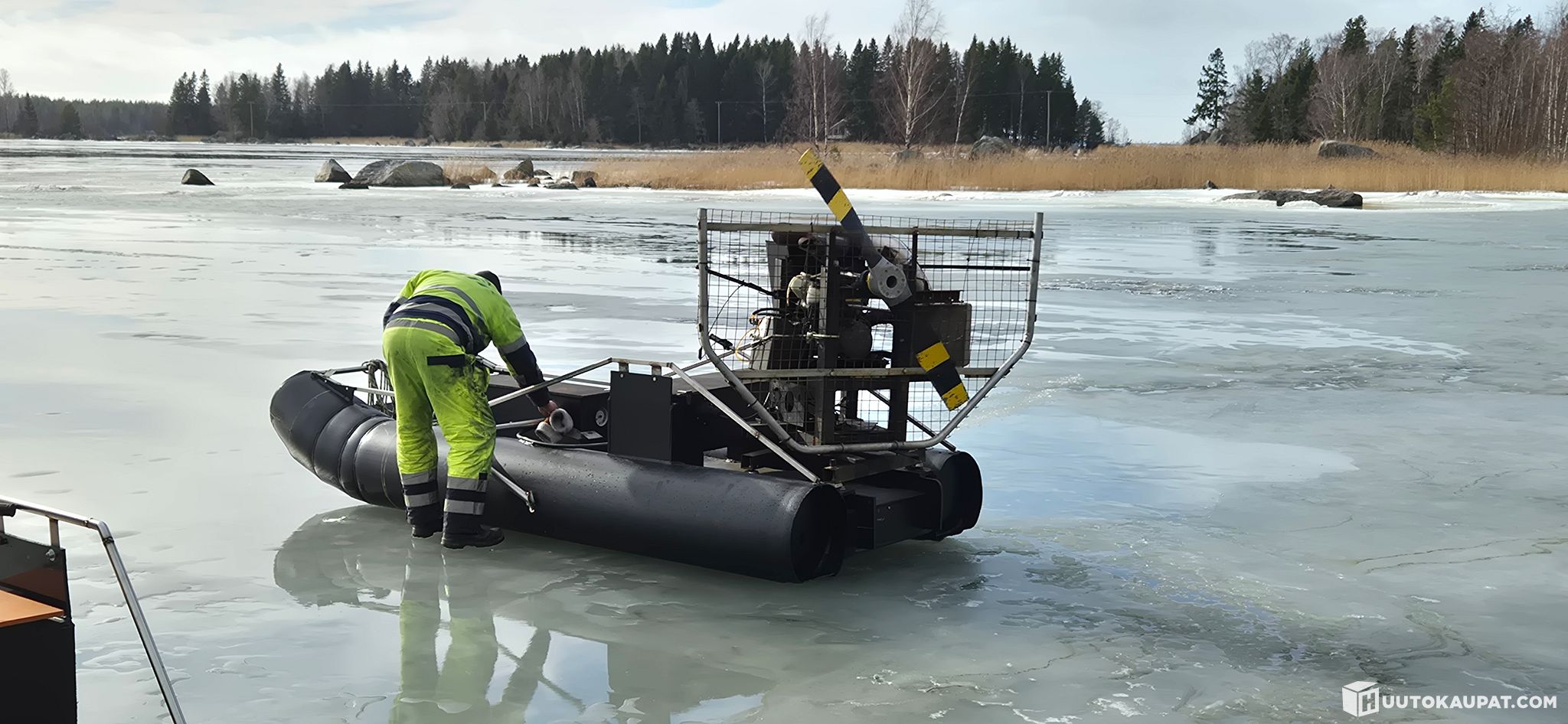 This unusually early spring makes the hydrocopter the only practical vehicle in these conditions.