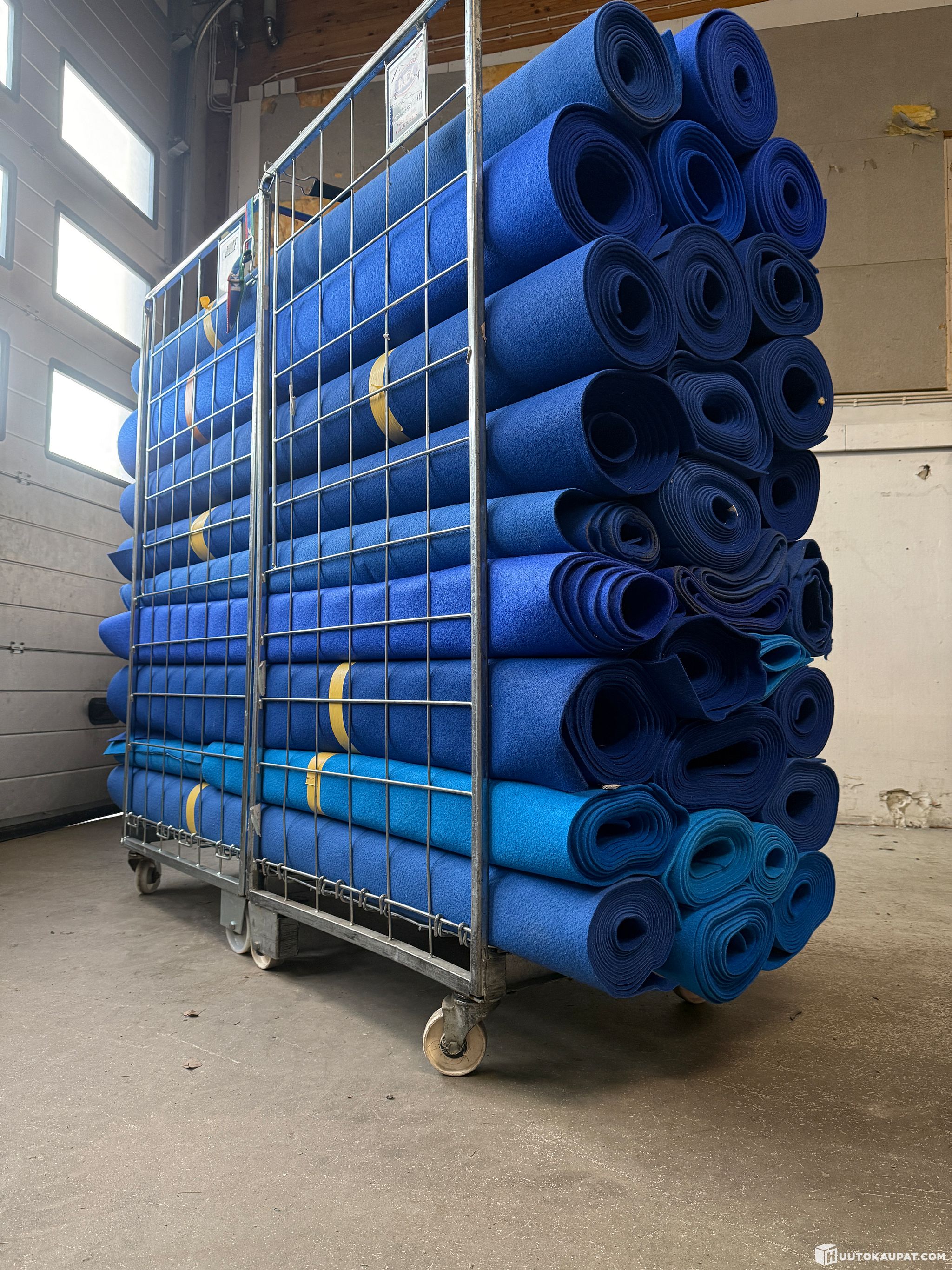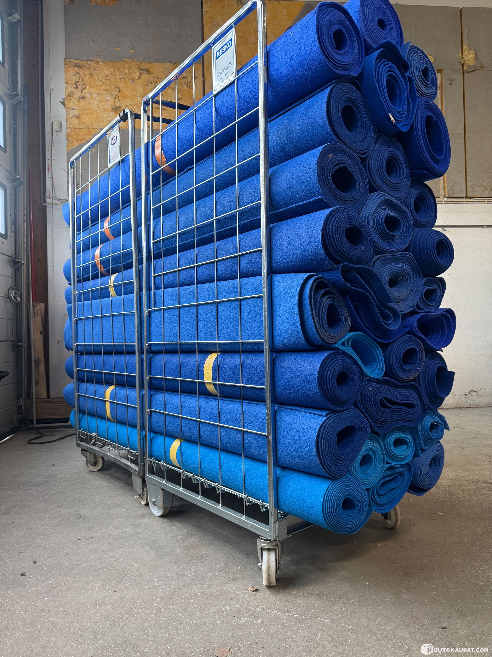 Bulk lot: 2 m-wide used popular thick blue protective matting on twin rolls, Ylöjärvi