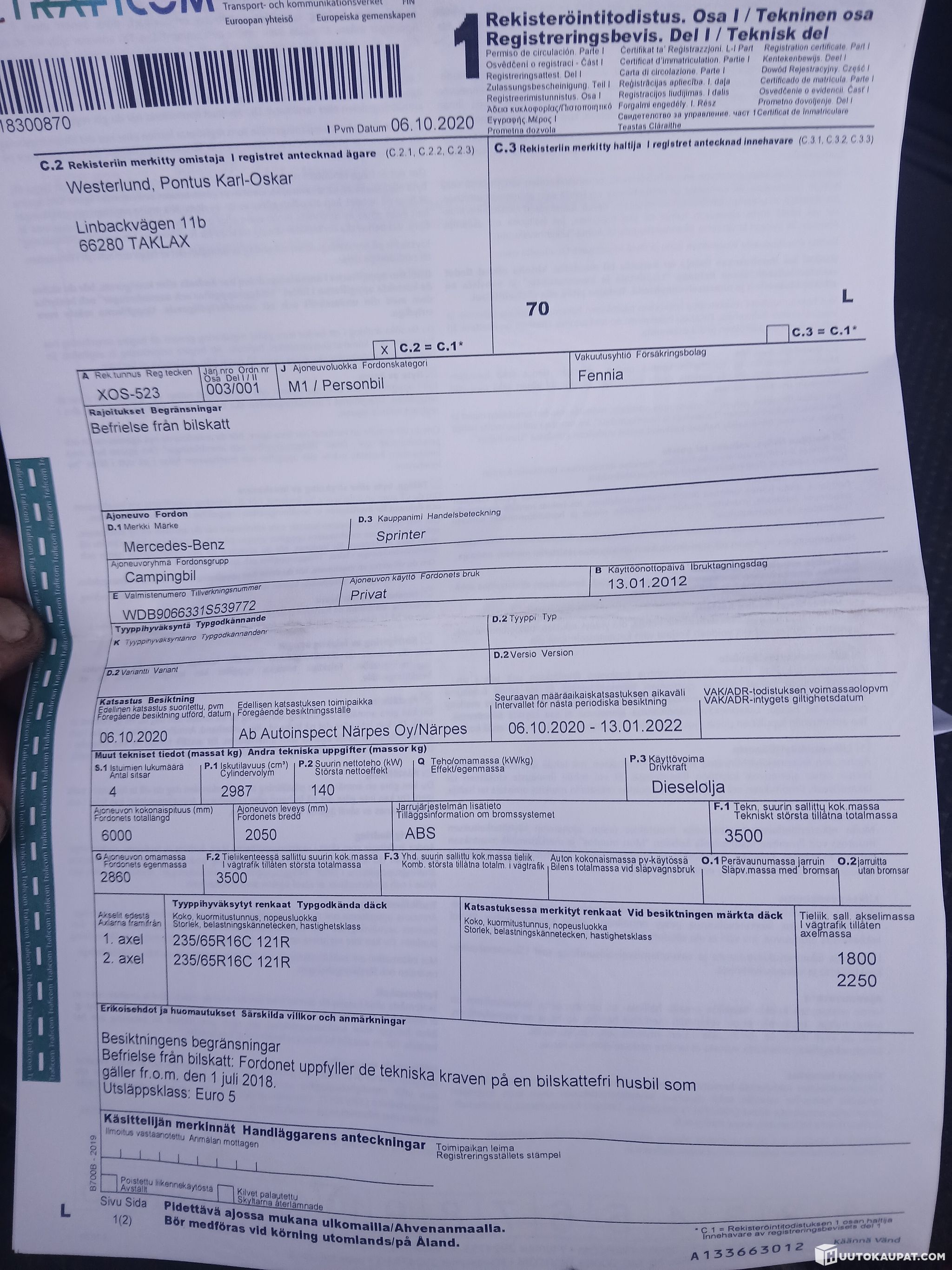 Lohjan Autokeskus / Tammisaaren Autokeskus / LA-auto Salo lists, Huutokaupat.com sells